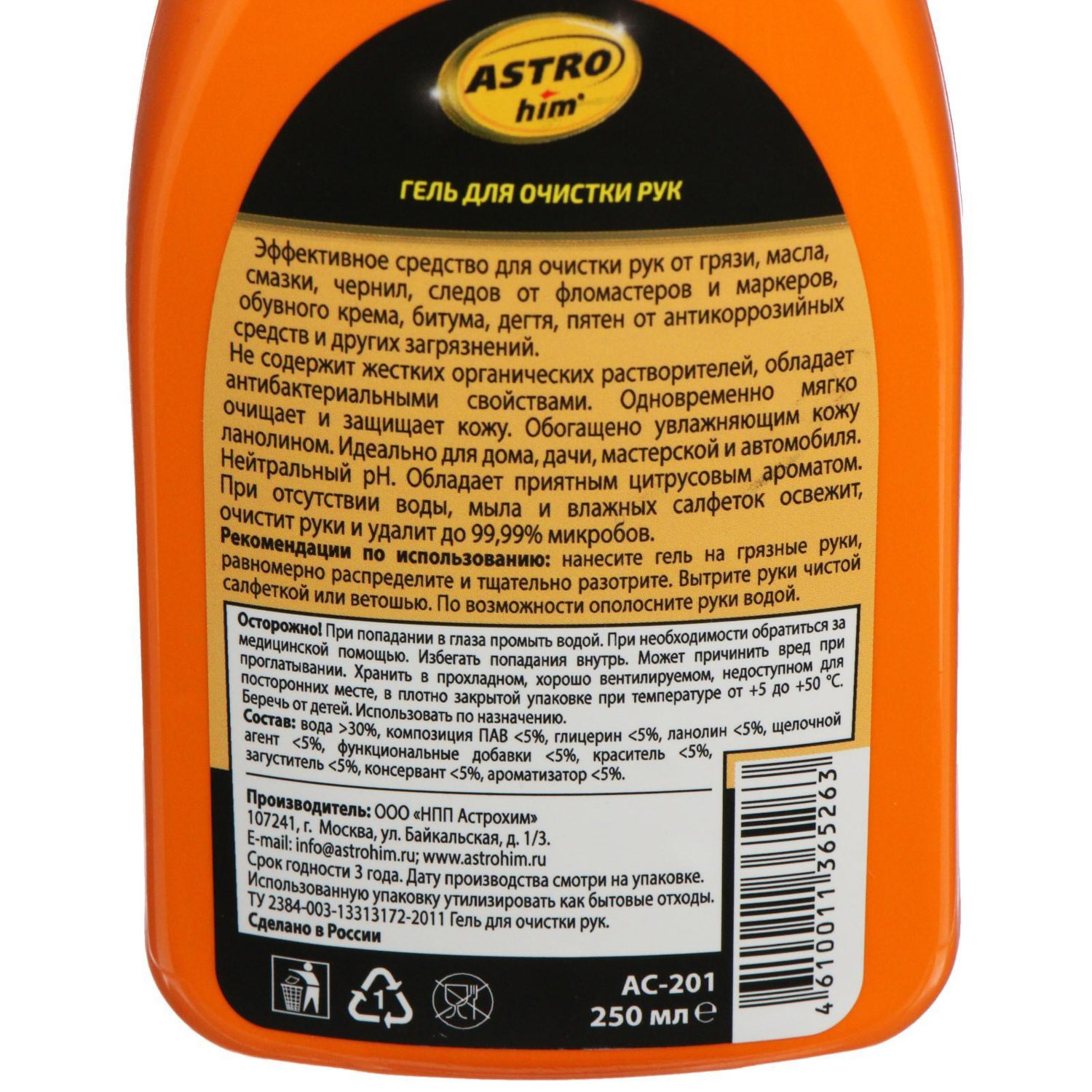 яяяГель для очистки рук Astrohim с антисептическими свойствами, 250 мл, АС - 201 2707411
