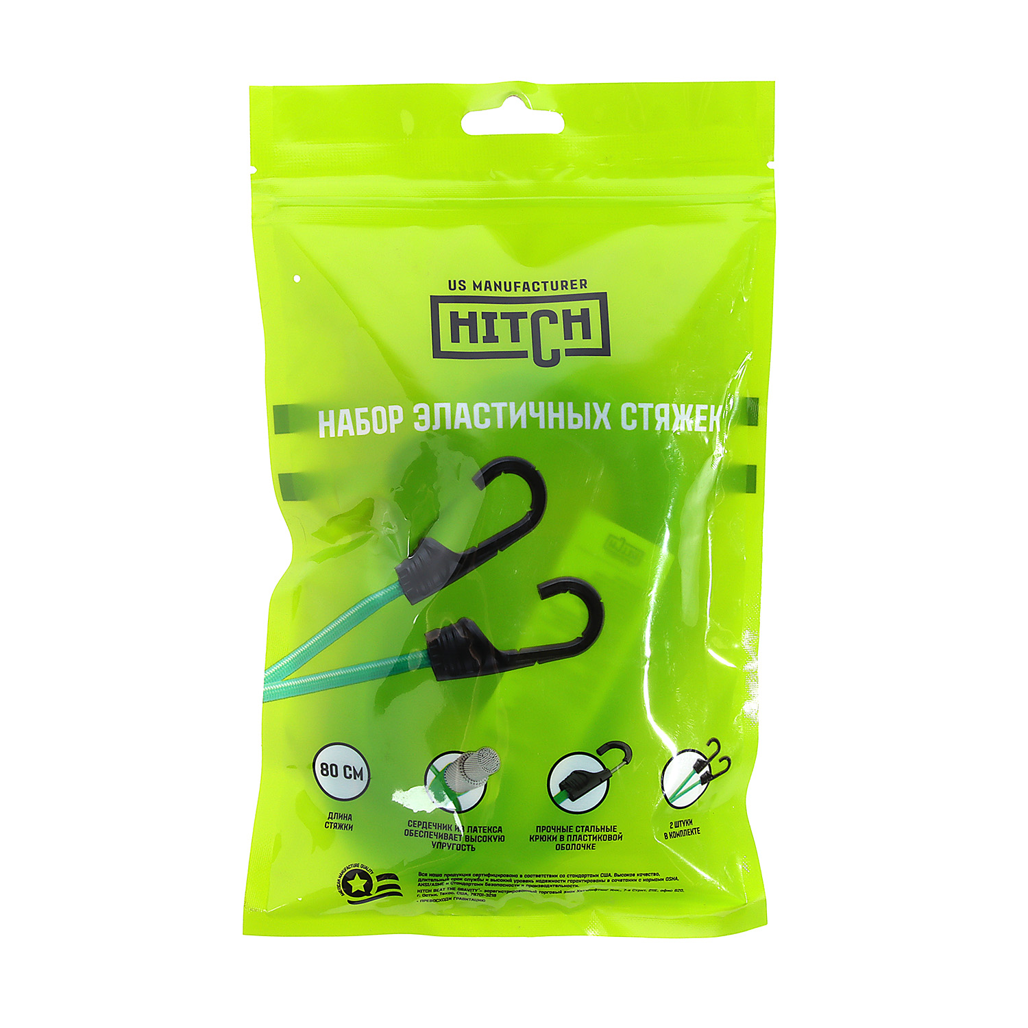 Стяжка эластичная 80см, d8мм, 2шт, резина,латекс, крюк.пласт, сердц.сталь арт.SZ087655 Hitch Regular *1/50