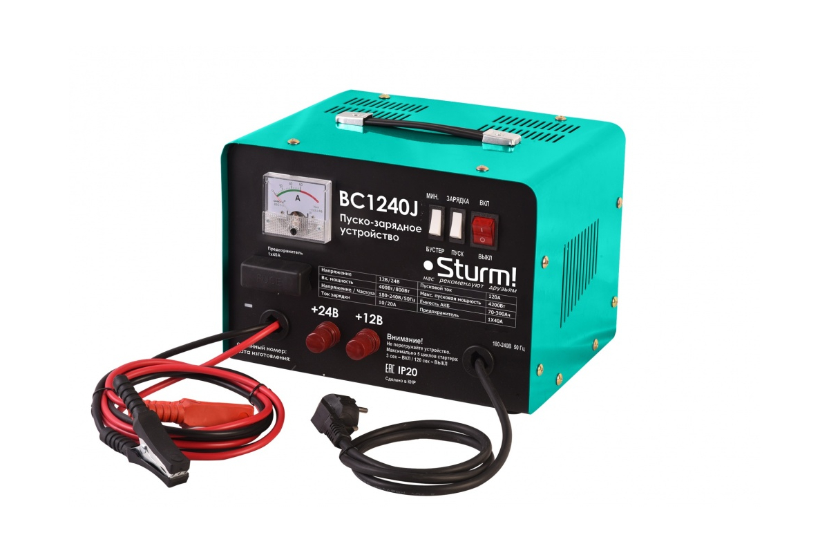 Устройство пускозарядное 220В 12В/24В 4200Вт 10/20А пуск.ток 120А до 300Ач BC1240J Sturm! *1