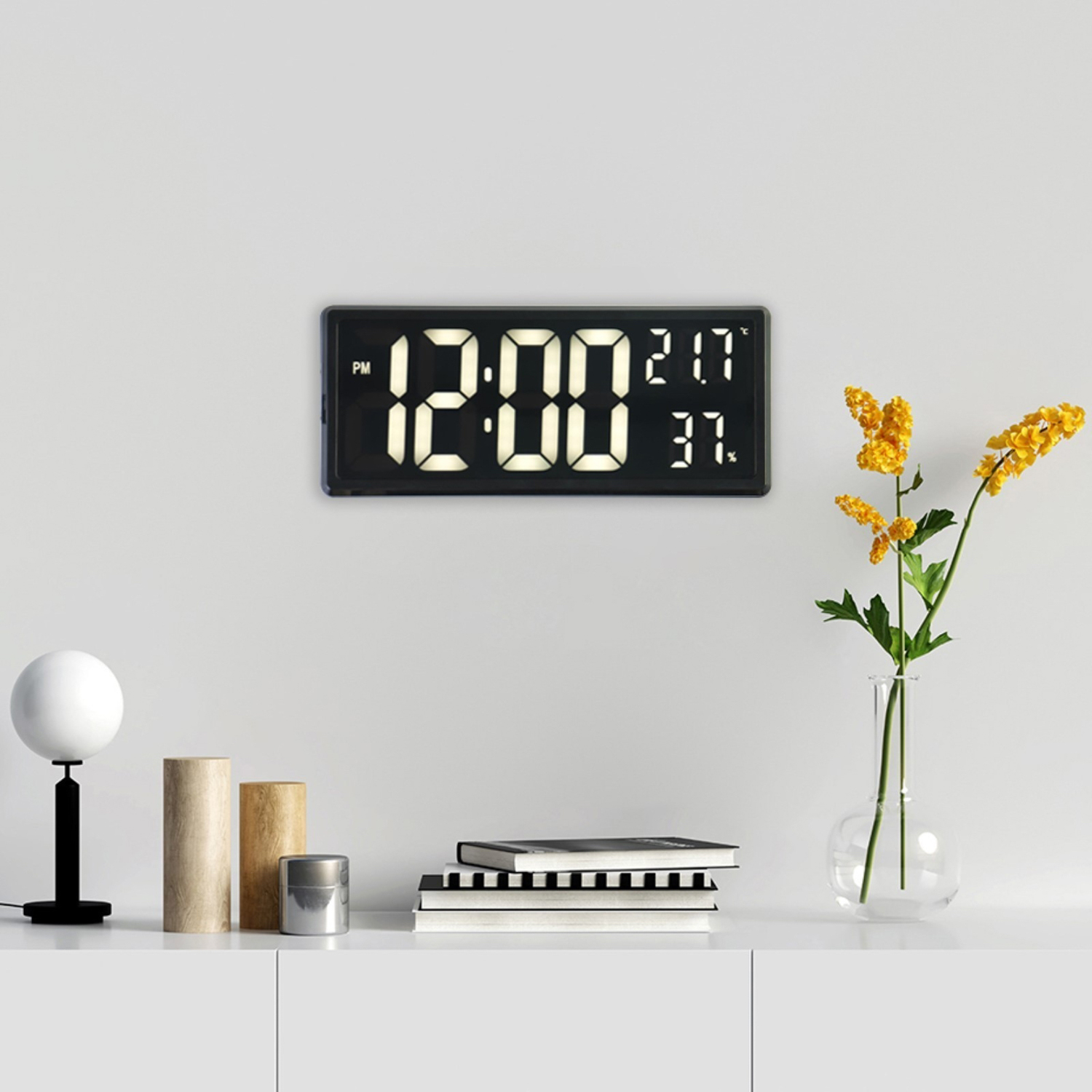 Часы электронные настенные, настольные, с будильником, 36 х 15 х 3 см, белые цифры 7533409