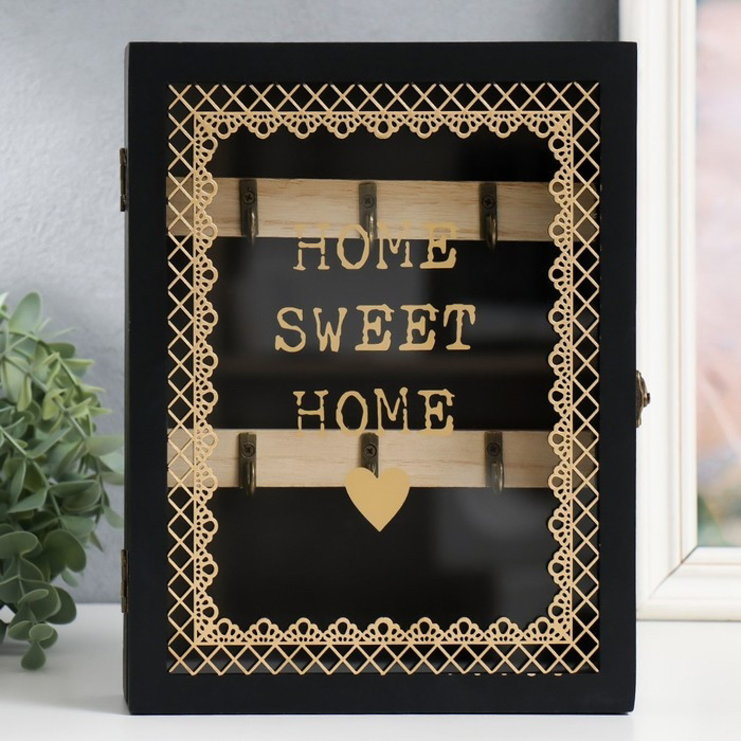 Ключница дерево 6 крючков "Дом, милый дом" чёрная 20х5,5х26 см 9330041
