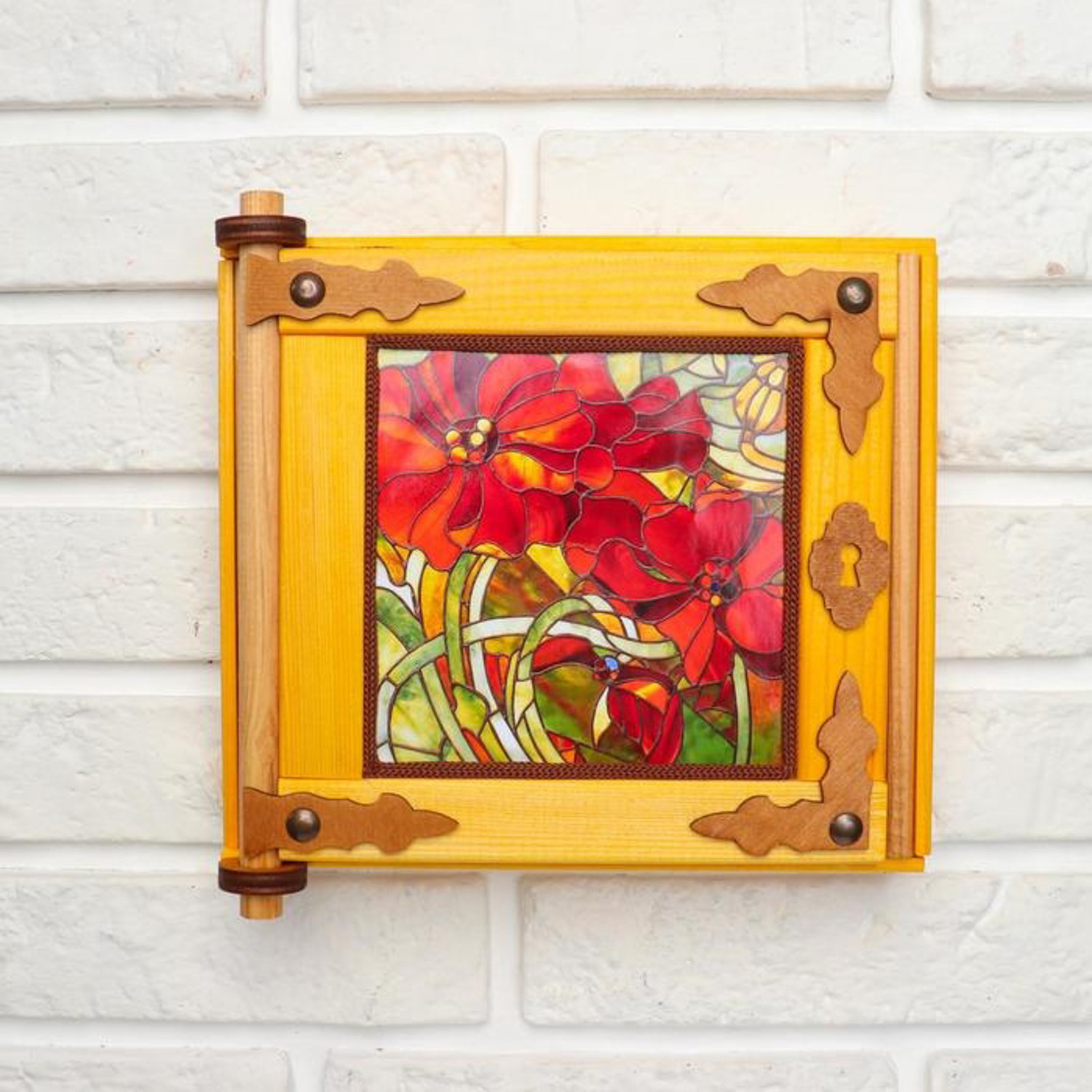 Ключница - картина, деревянная "Маки", 20 х 20 х 6 см 5618773