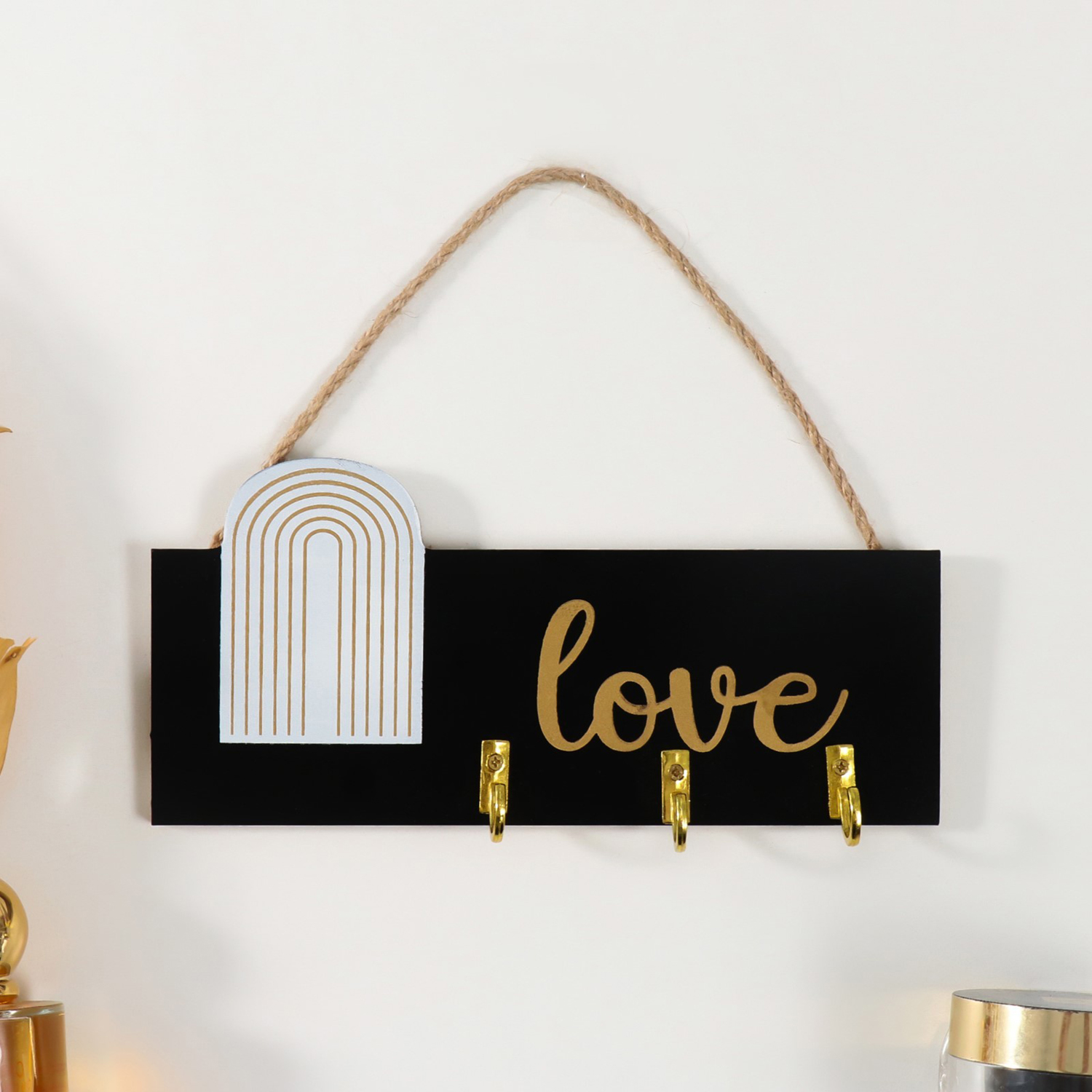 Крючки декоративные дерево "Любовь. Абстракция. Радуга" чёрная с золотом 20х9,3 см 10498998