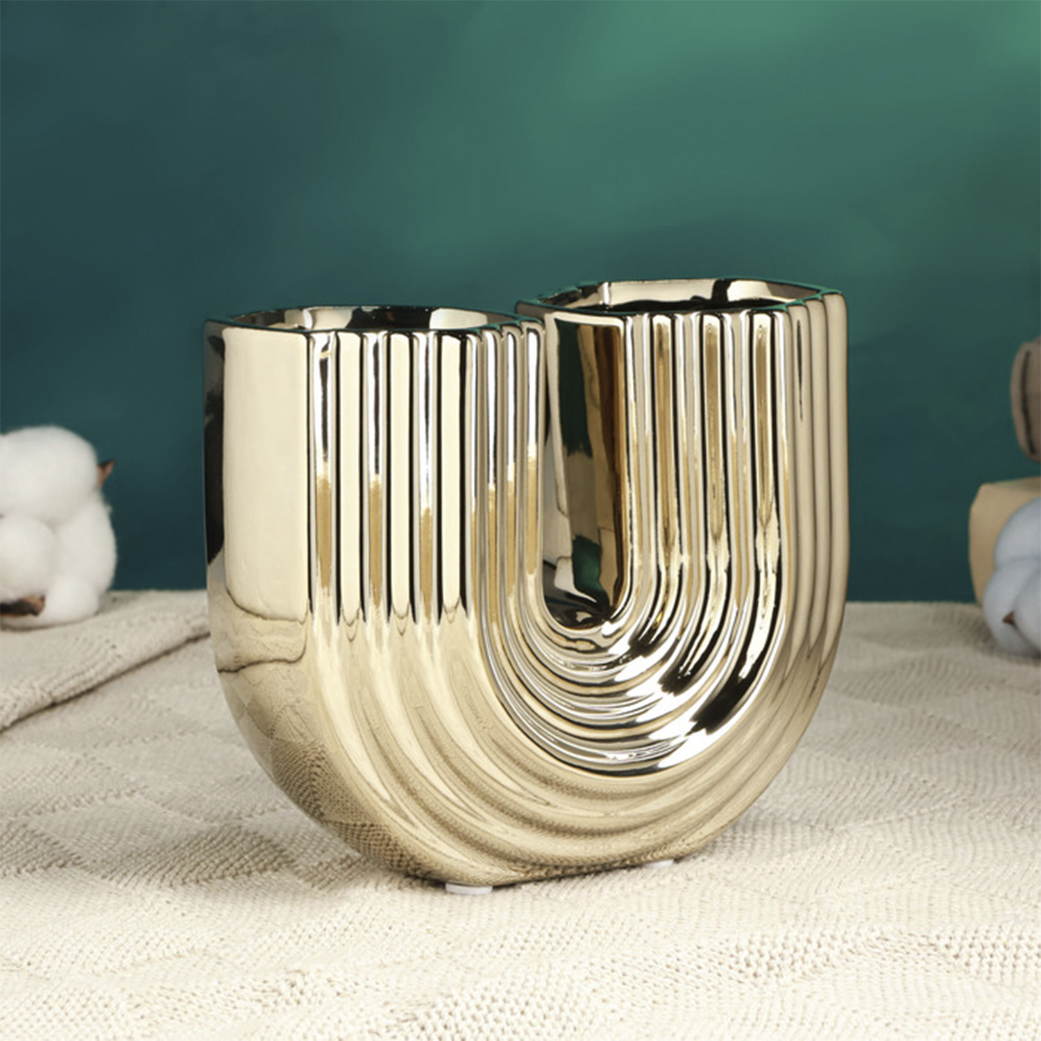 Ваза «Милли», 14.5×14.5×12 см, керамика, золотистая