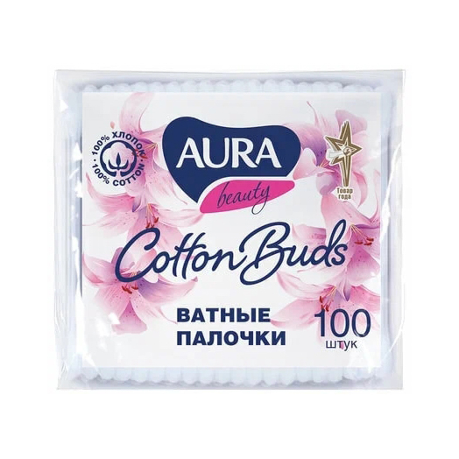 яяяВатные палочки AURA Beauty 100шт пакет *30