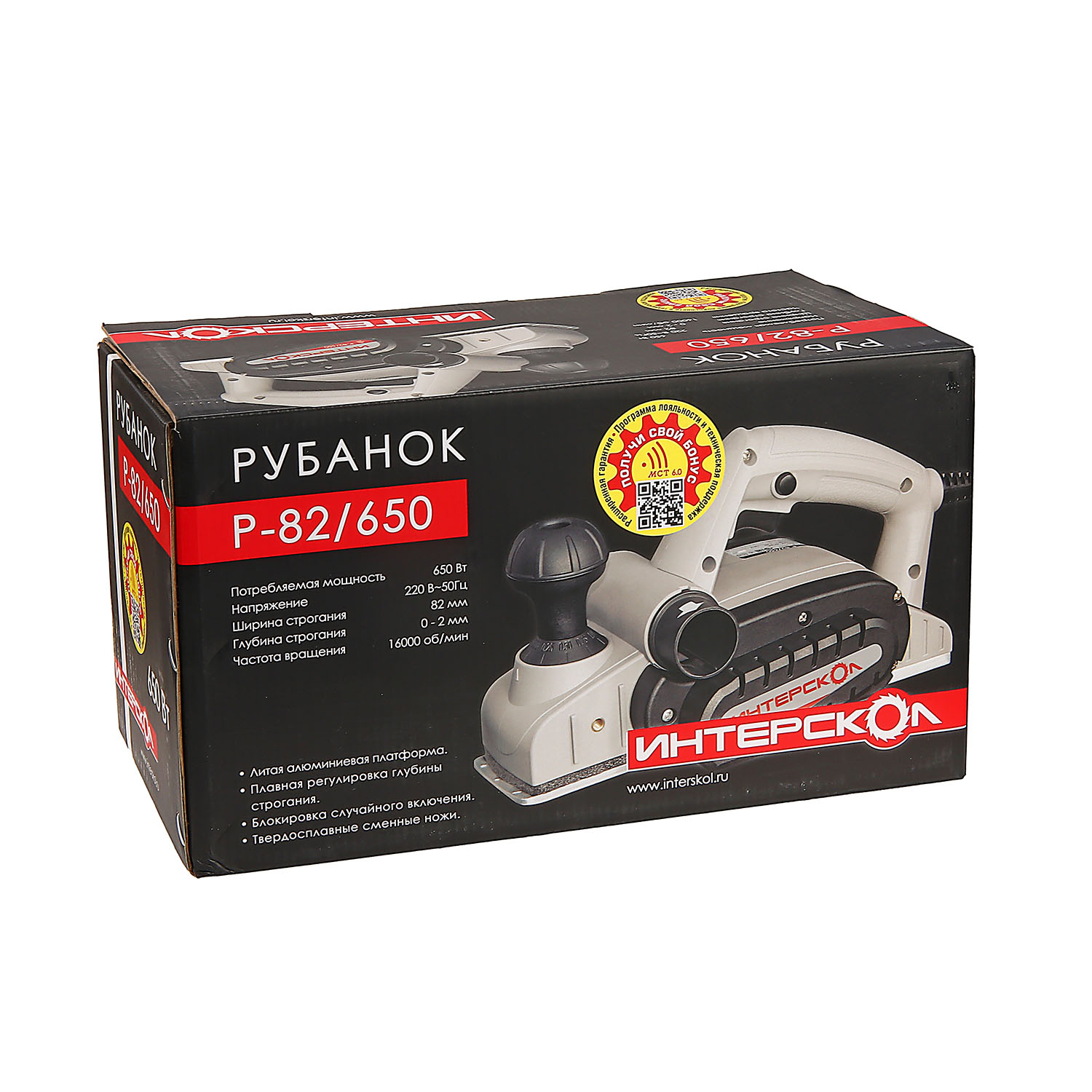 Рубанок электр. 650Вт 14000обм ширглуб строг. 820-2мм глуб.паза15мм Р-82650 ИНТЕРСКОЛ *16