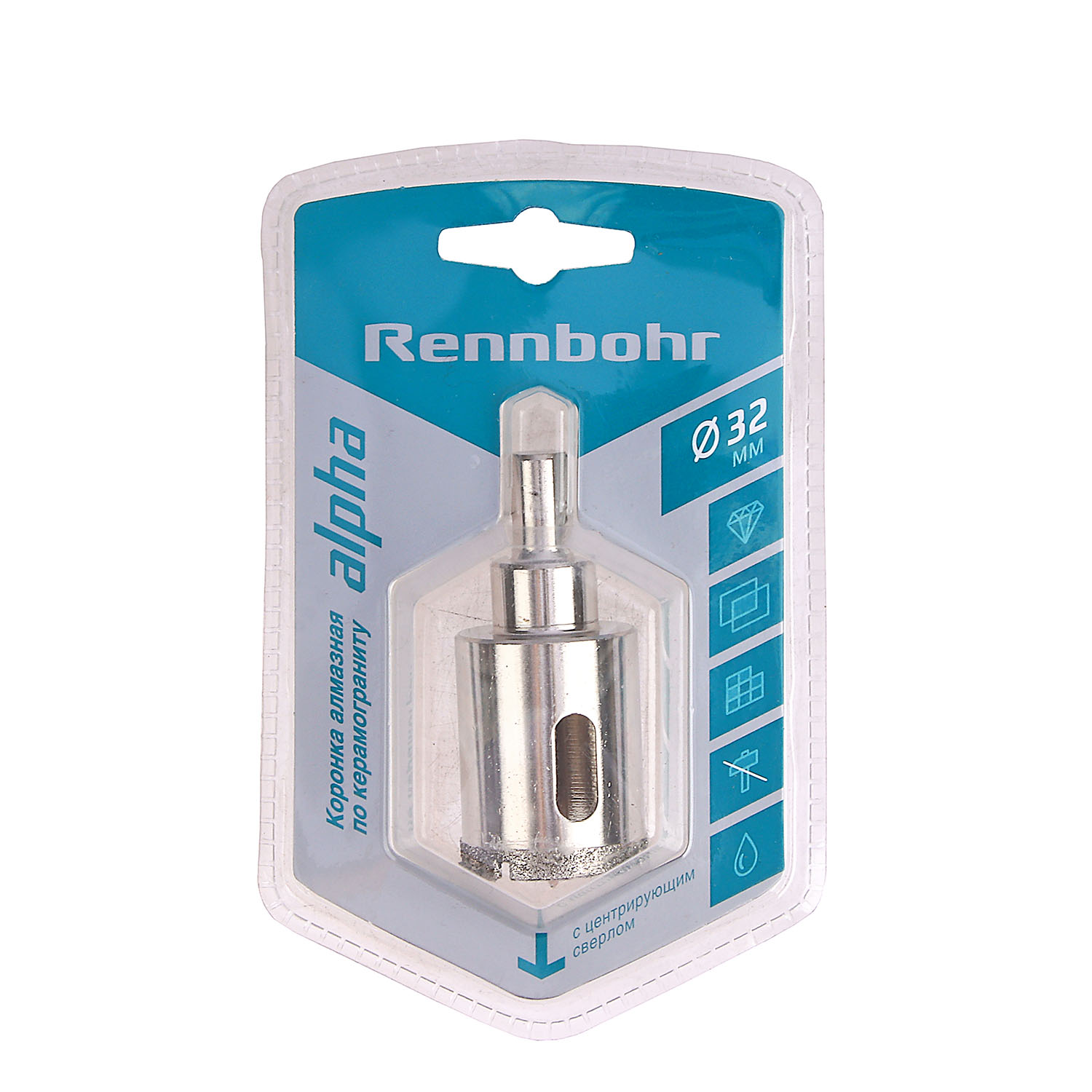Коронка по керамограниту 32мм алмазная центрирующее сверло (676232) Rennbohr *1/10/120