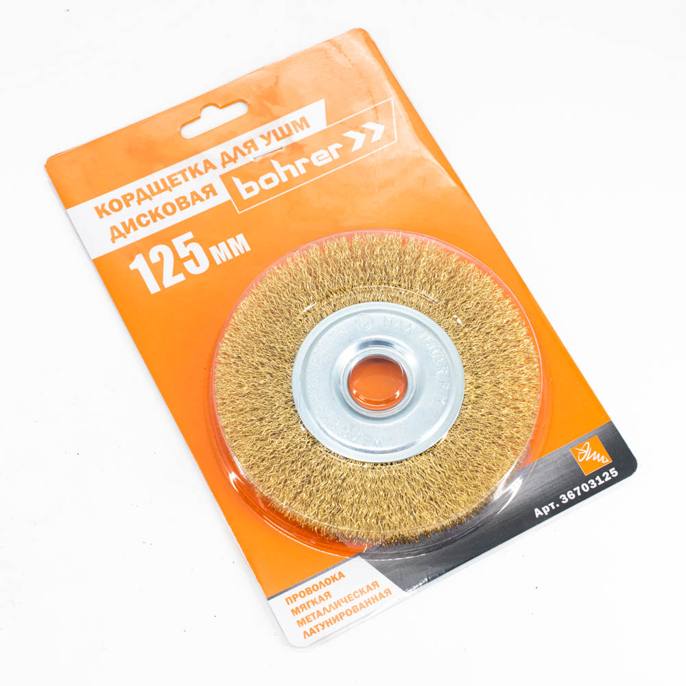 Щетка-крацовка "плоская" латунирован.круч.провол.0,3мм125мм 22,2мм для УШМ арт.36703125 Bohrer *1/60