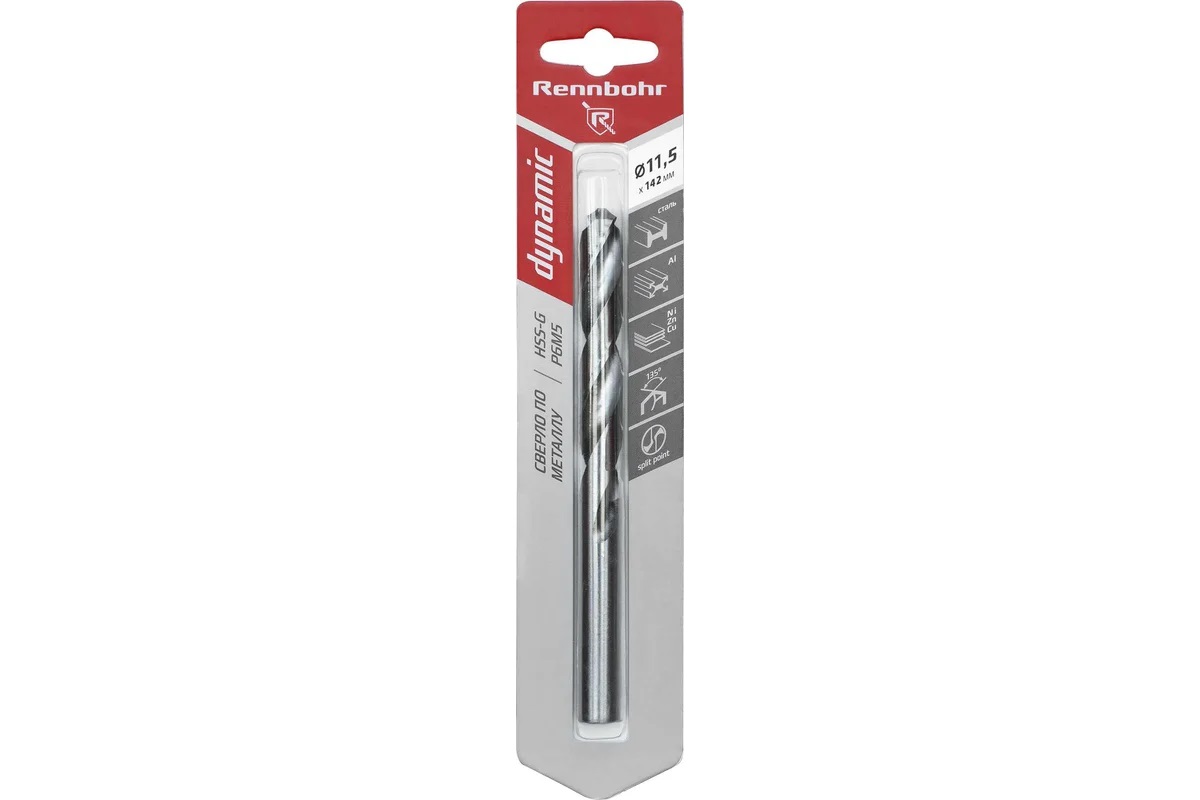Сверло по металлу11,50*142/94мм HSS-G P6M5 (1шт) блистер арт.675115 DYNAMIC RENNBOHR *6/30/150