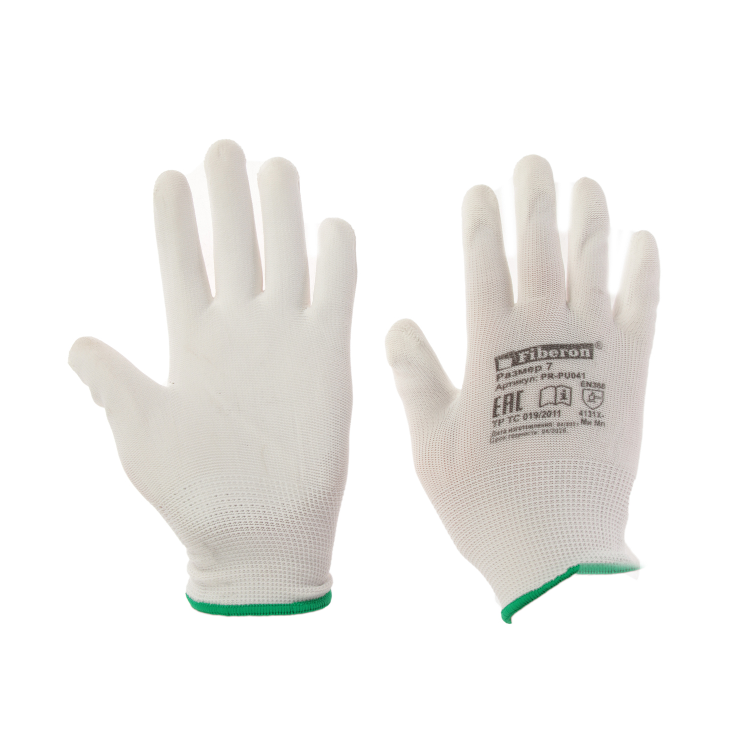 Перчатки рабочие полиэстер, с полиуретановым обливом, Белые, р-р 7(S) PR-PU041 "Fiberon"12/120