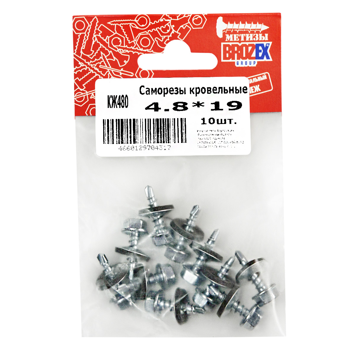 Саморезы кровельные BROZEX пакет 4,8*19 (10шт) *10/100