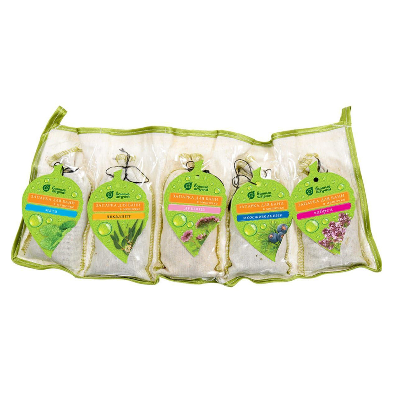 Набор запарок д/бани в сумочке 5шт. (мята, эвк, можжев.,чабрец, душица) "Банные штучки"*1(для розн)