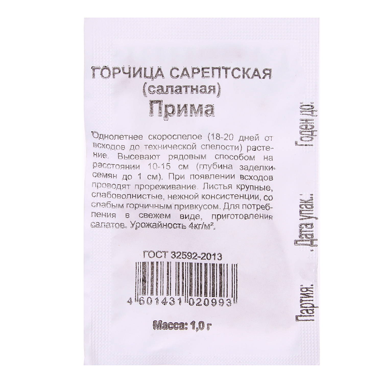 Семена Горчица листовая Прима 1гр Гавриш БЕЛ *20/500