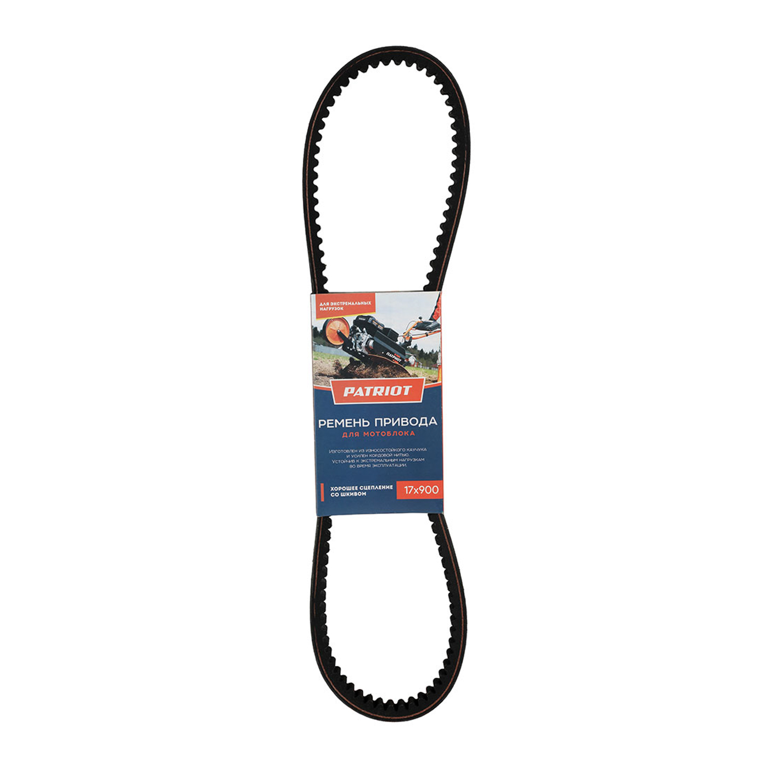 Ремень PATRIOT 17X900 мотоблока MaxCut MC750. Необходим для передачи крутящего момента с двигателя на ведомый вал, за счет чего мотоблок начинает движение. Ремень изготовлен из прочных материалов, имеет длительный период эксплуатации.