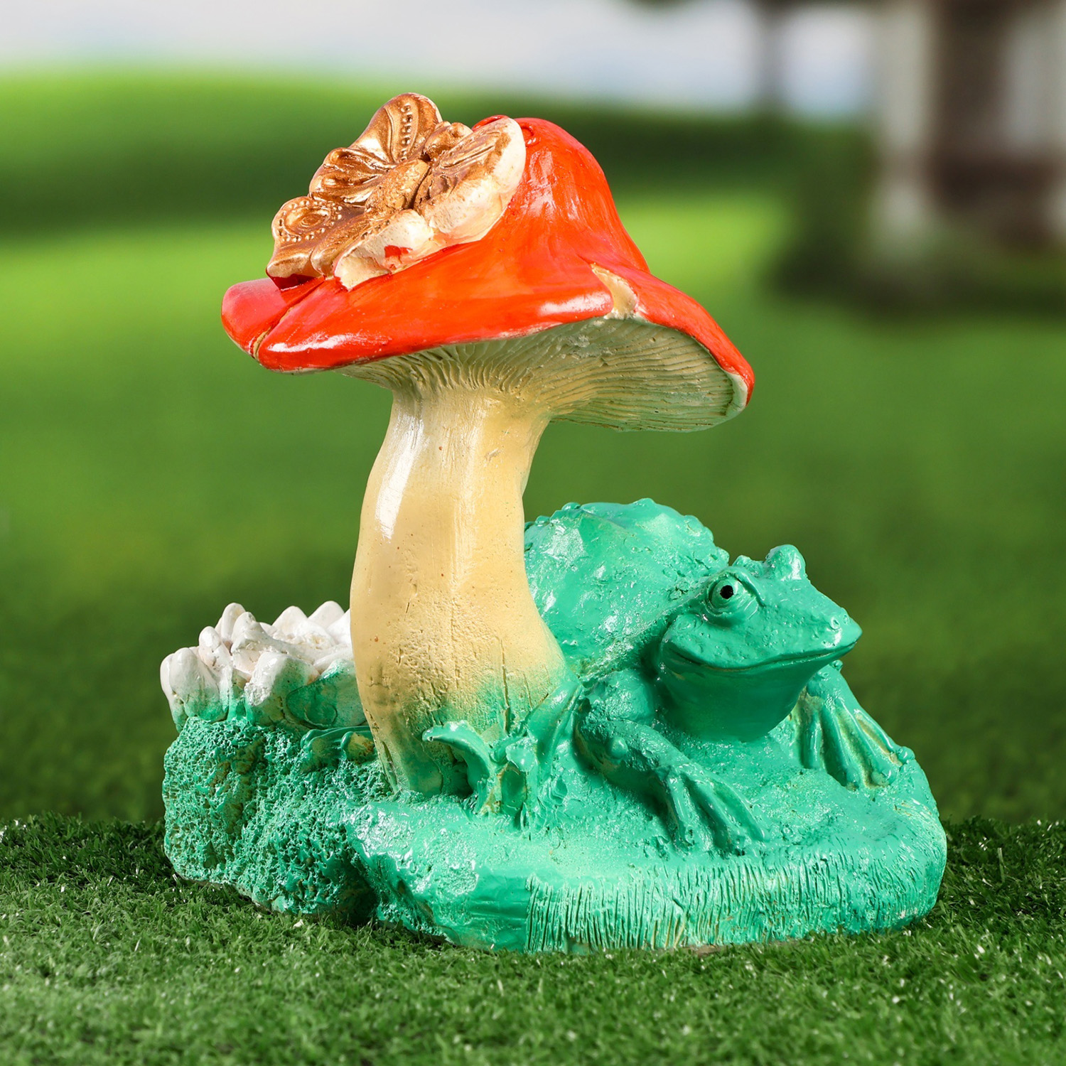 Садовая фигура "Лягушка на грибе" 21х18х20см 10341004