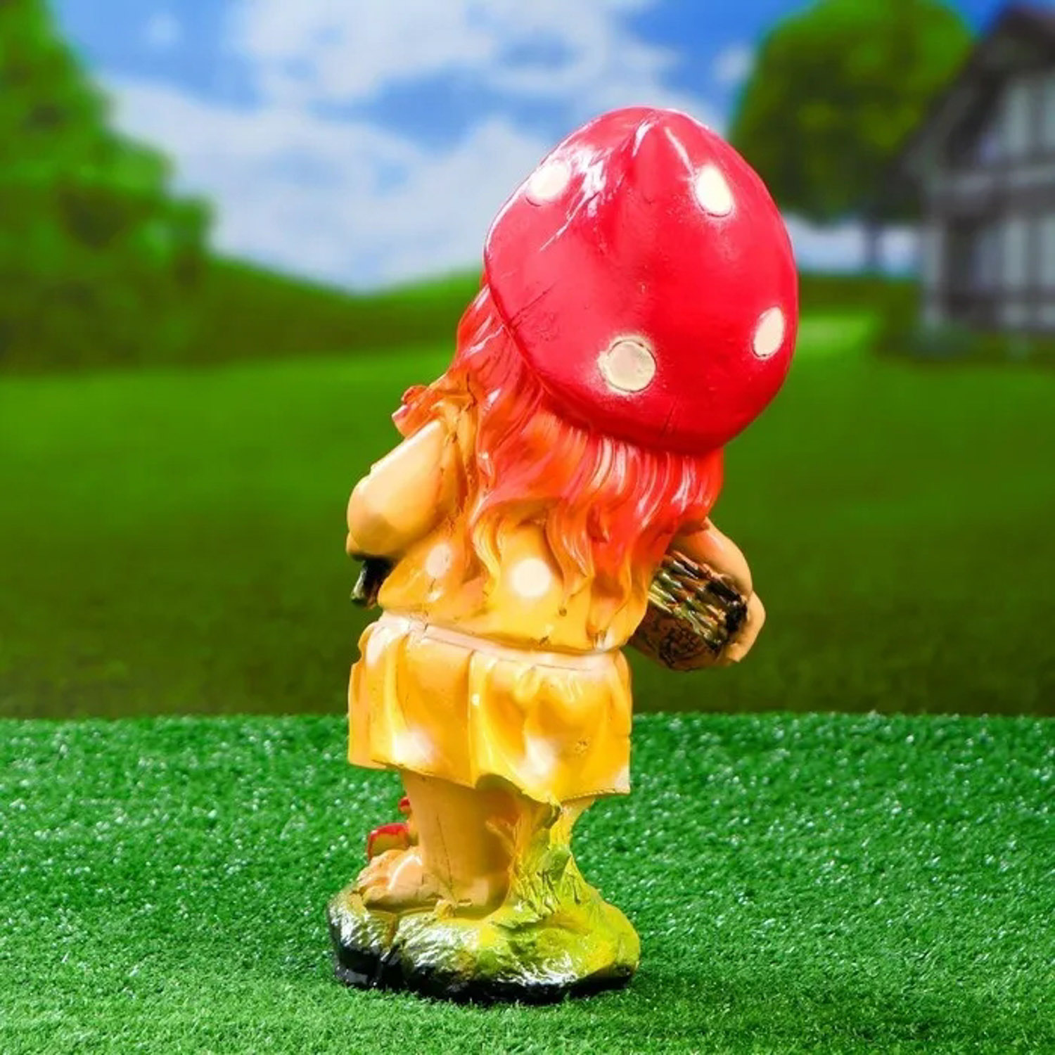 Садовая фигура "Гномиха с мухоморами и лопатой" 34х19см 3467701