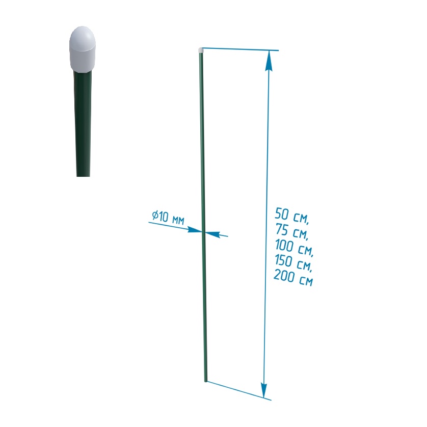 Опора-колышек для растений метал, выс 750 мм, d трубы 12мм  Зеленый 10002910СБ *30