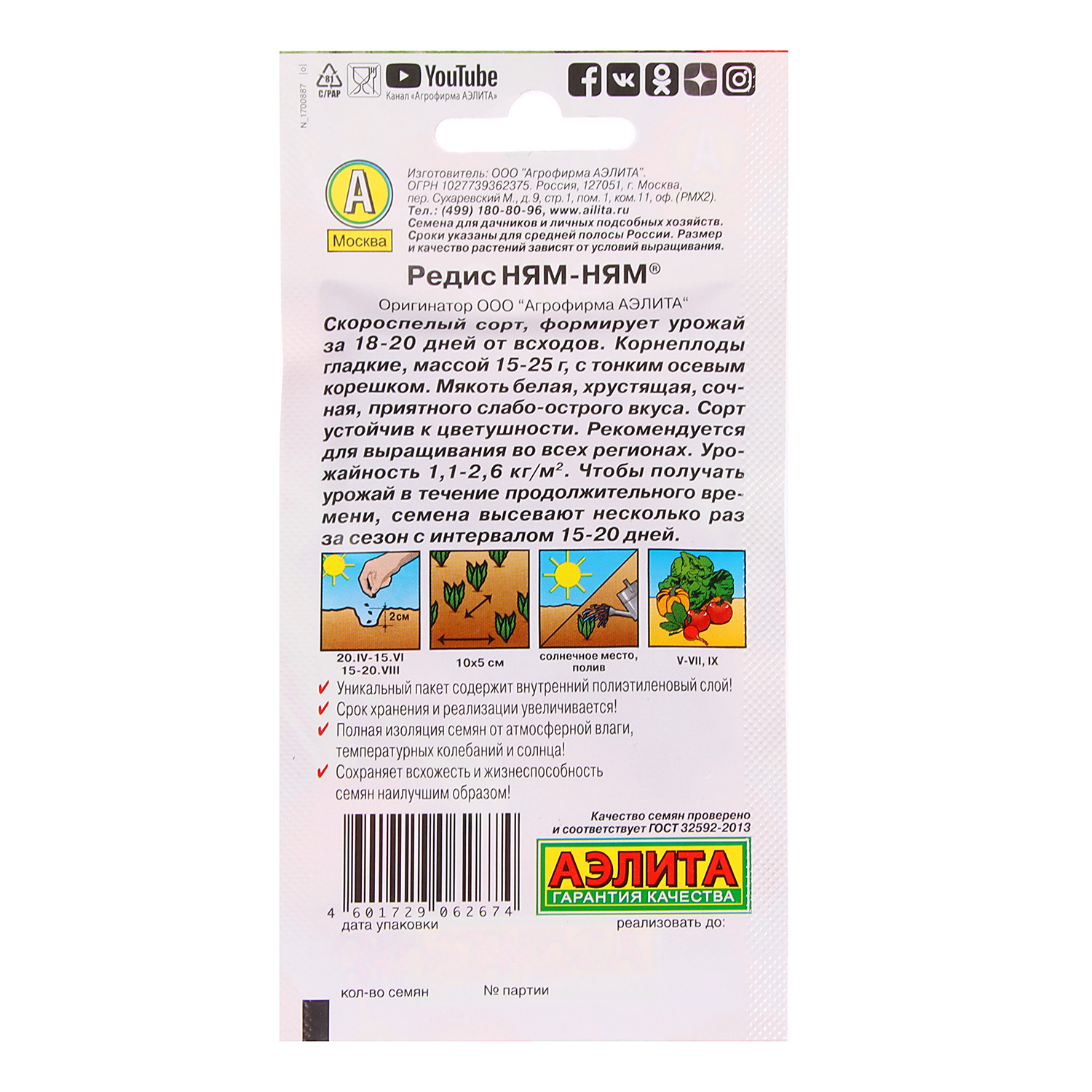 Семена Редис Ням-Ням 3гр Аэлита цв автор *10/500