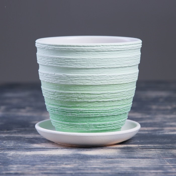 Кашпо керам. Крокус Букле 1,4л d верха 149мм h130мм с поддоном Зеленый №2 КС-К2-196-01 *9