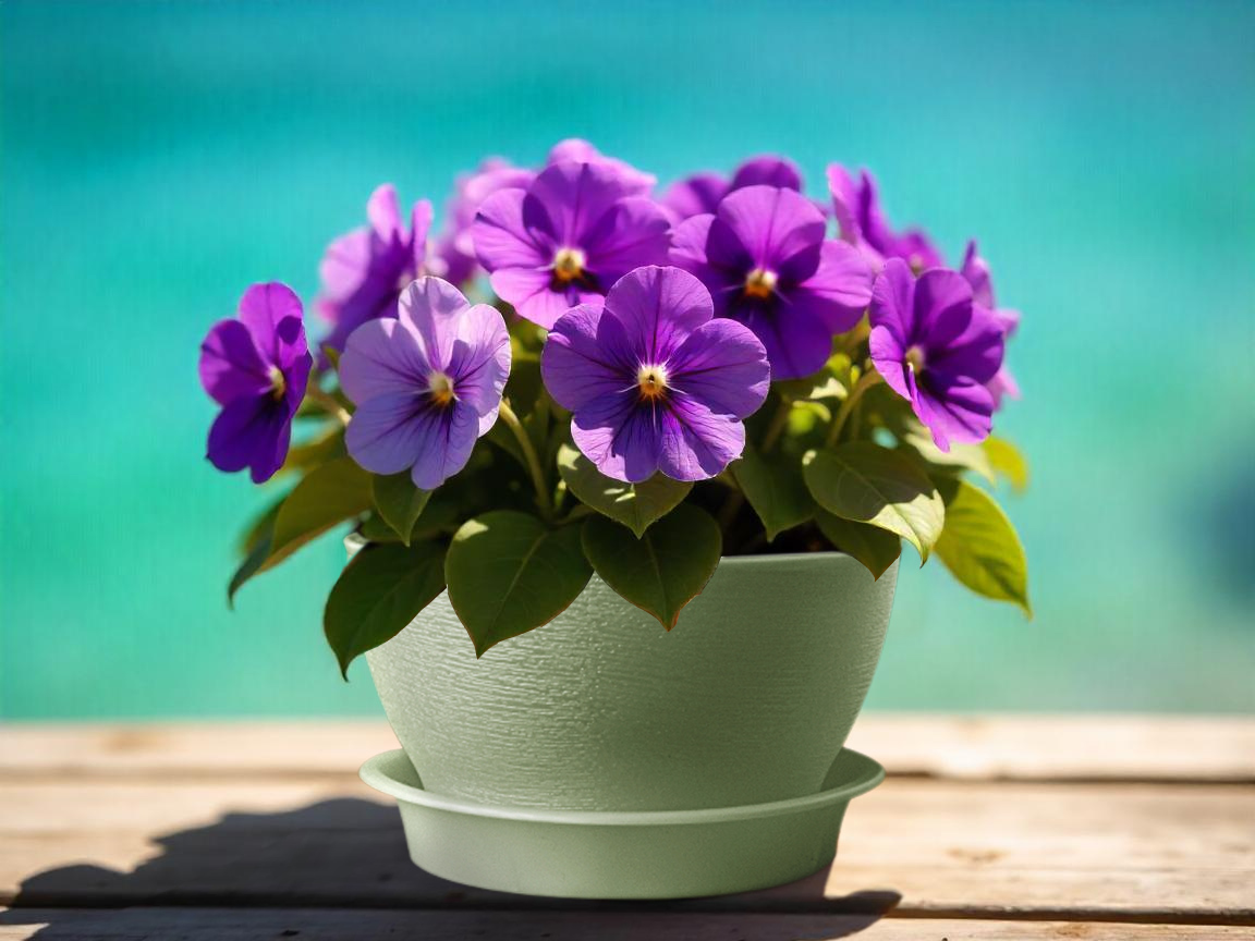 Кашпо пластм. "Фиалочка" 0,8л d верха 140мм h80мм с поддоном Зеленый перламутр. КФ 0,8ПЗ *1/65