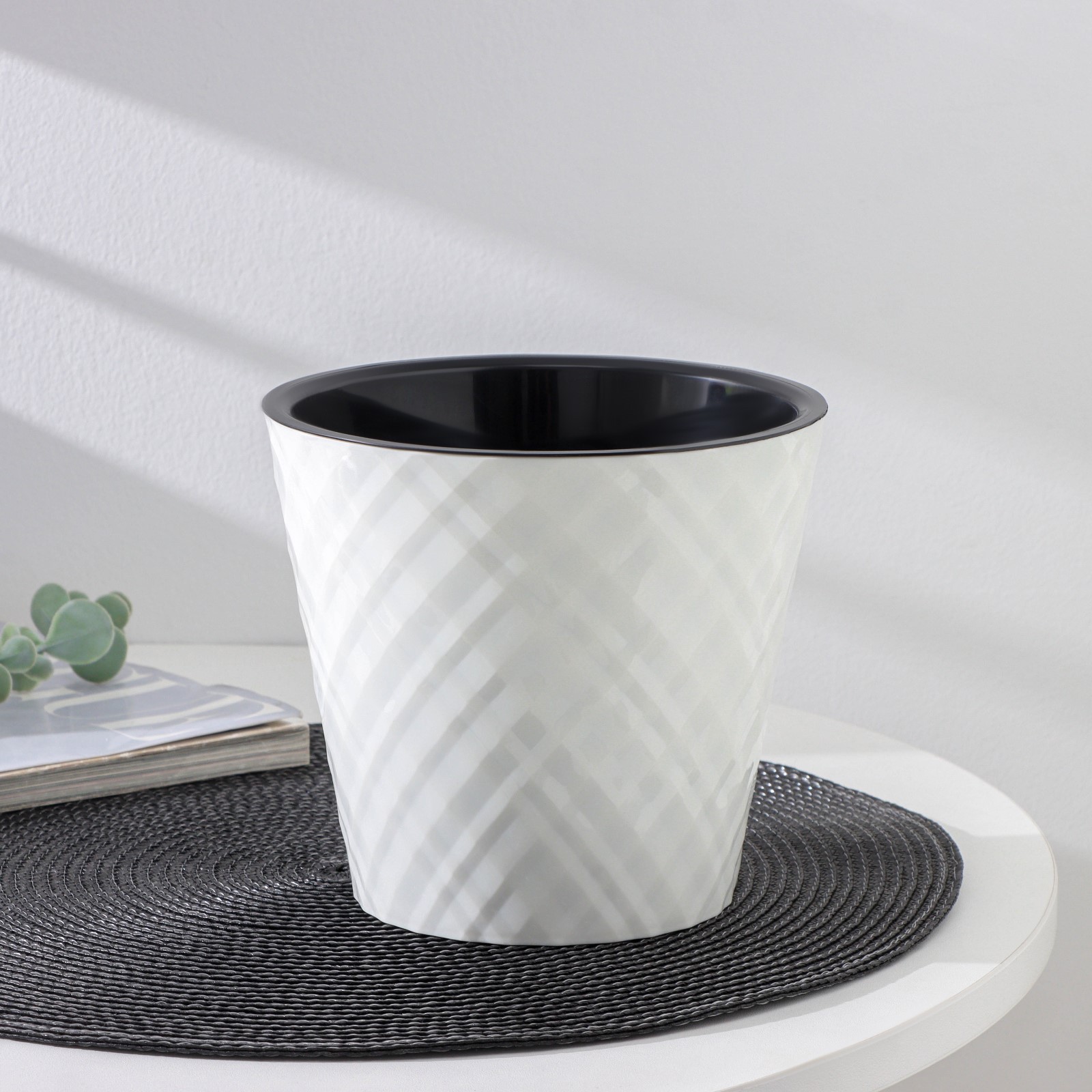 Поверхность кашпо выполнена вертикальными волнами, сформированными по модели пустынного песка. Горшок укомплектован вкладышем для регулировки в нём воды. Между горшком и вкладышем есть пространство для воды, которая используется растениями при необходимости. Преимущества вкладыша: не нужен поддон, нет необходимости часто поливать цветы, корешки не подвергаются гниению. Материал устойчив к солнечному свету, низким температурам и механическим повреждениям. Кашпо выполнены в природных оттенках: белый, кремовый, серый. Является неповторимой деталью способной украсить и оживить интерьер любого дома.