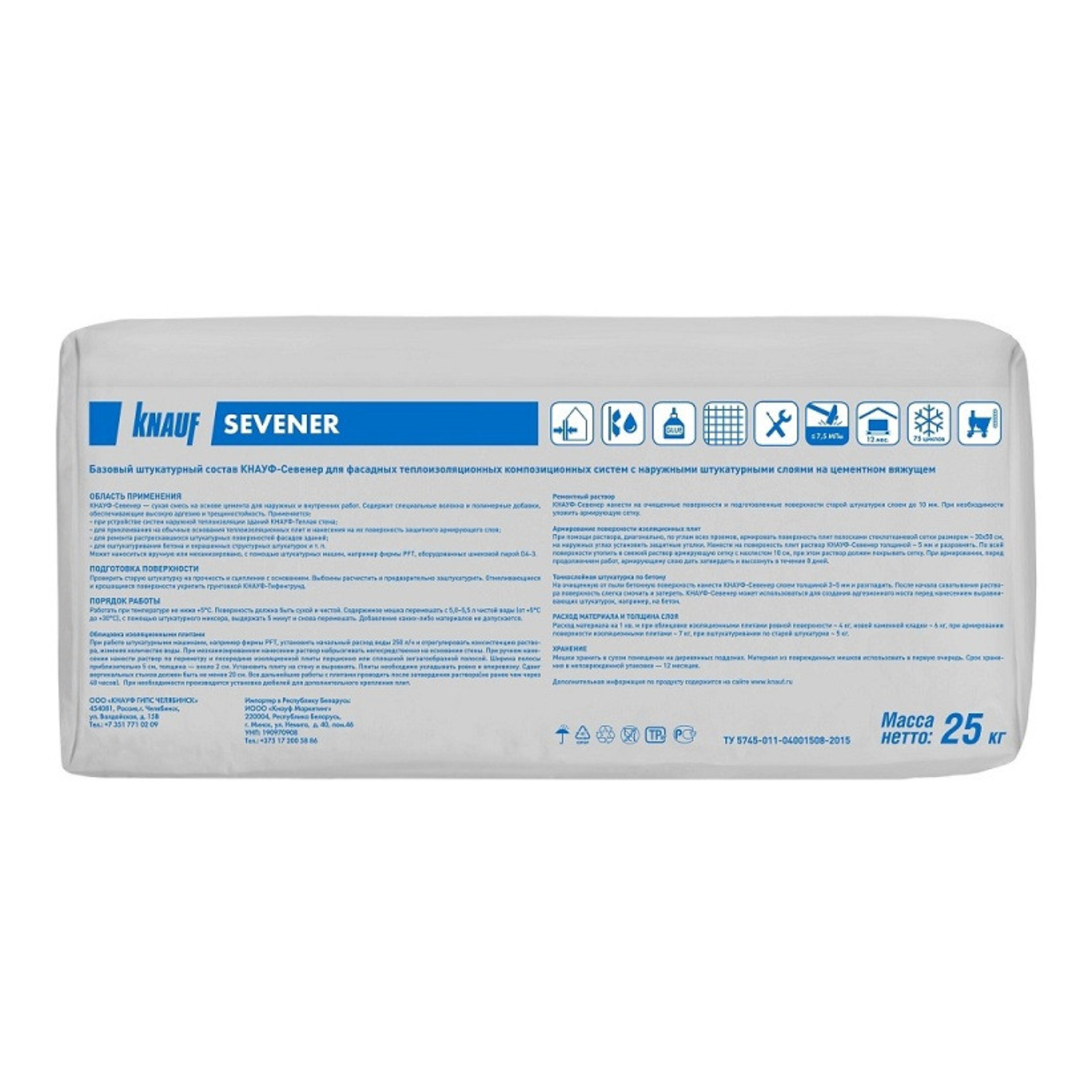 - Как тонкослойный промежуточный слой штукатурки для гладких бетонных поверхностей. КНАУФ-Севенер можно наносить на структурированные, прочные, очищенные от пыли минеральные штукатурки и такие же поверхности с дисперсионным покрытием или штукатурные покрытия на основе искусственных смол (при необходимости, после соответствующей обработки).