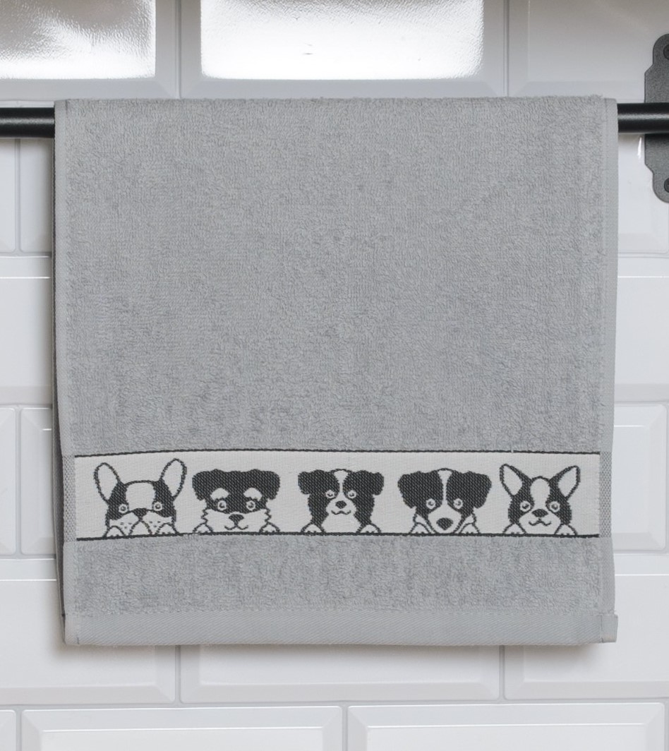 Полотенце махровое 30*60см Dog светло-серый 400гр/м2 Casa Conforte *10