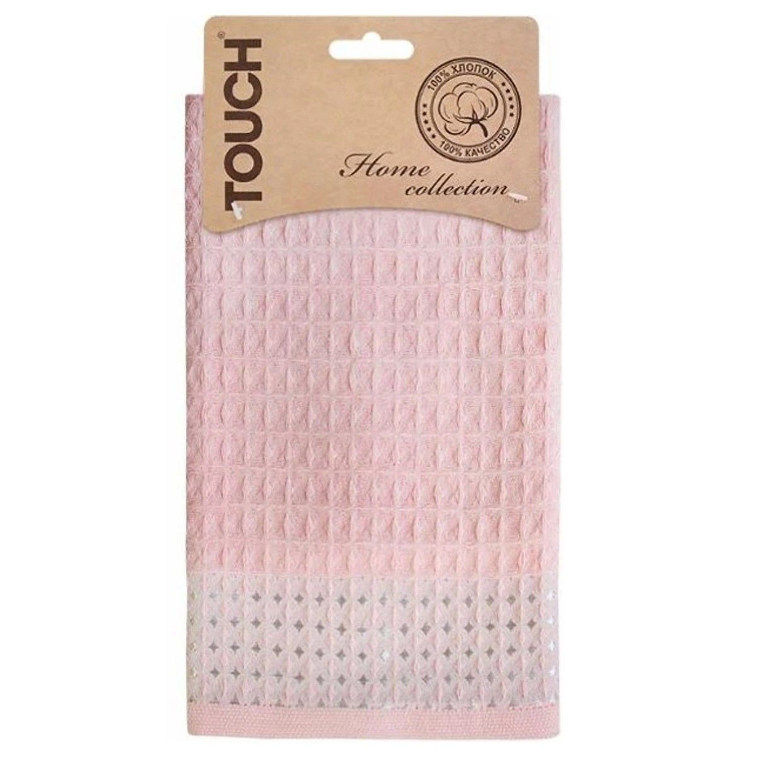 Полотенце вафельное 35*55см на хангере Крупная клетка розовое кружево 150г/м2 Touch *6