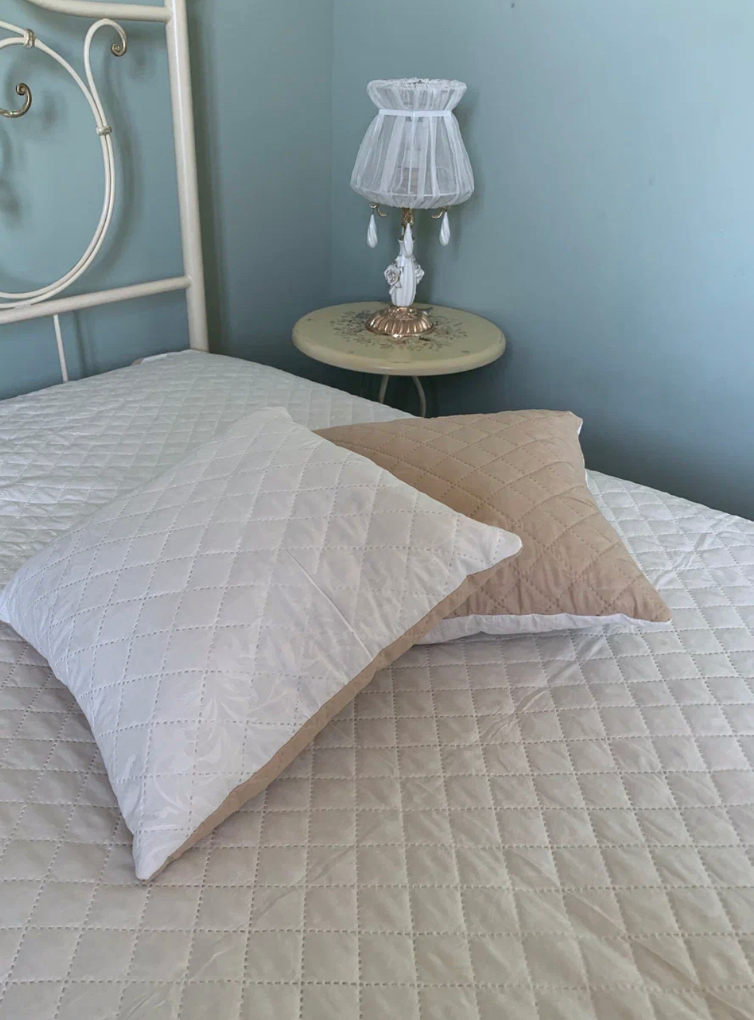 Покрывало 200х220см стеганое двухстороннее бежевый/молочный Орхидея *1