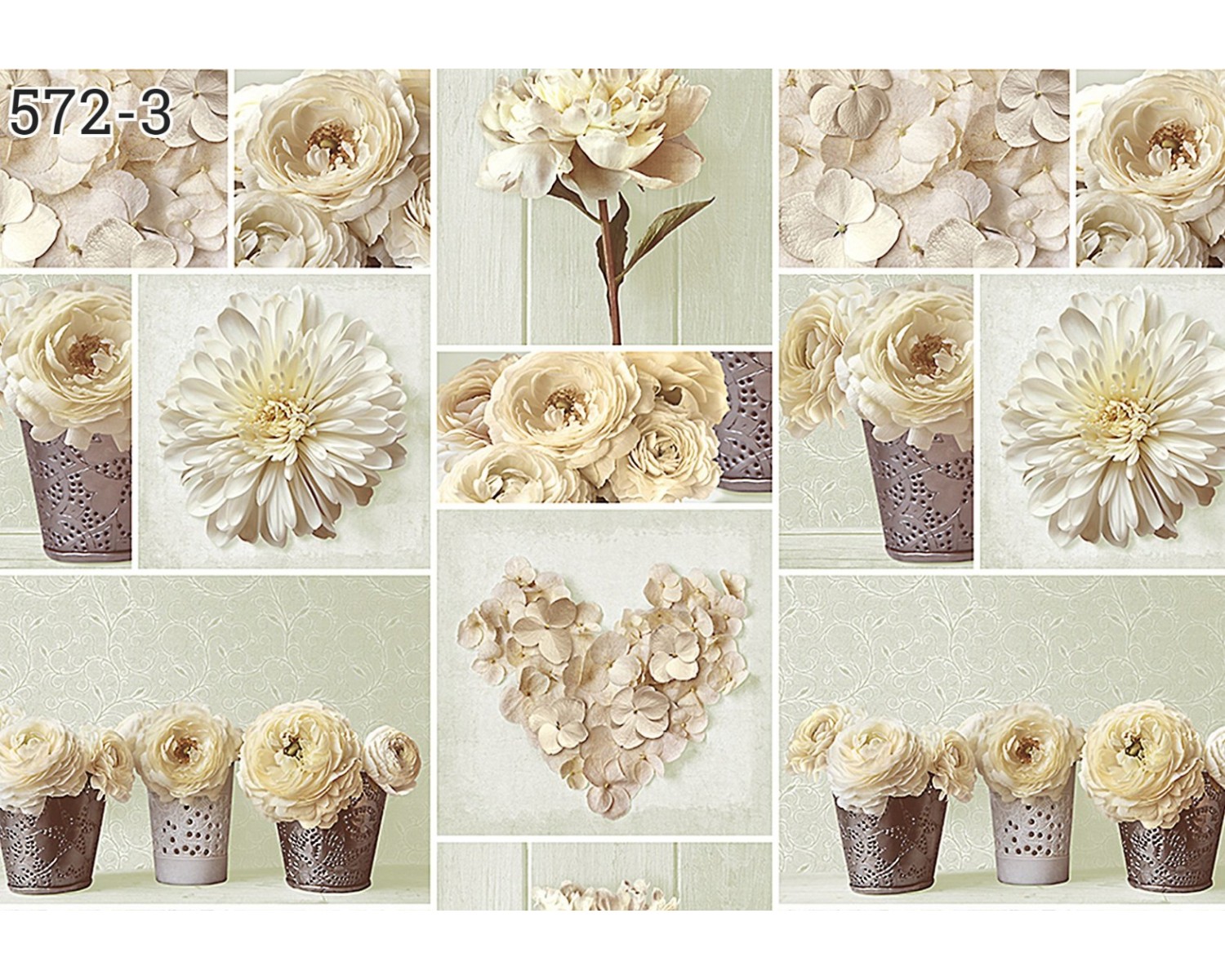 яяяКлеёнка на нетканой основе "Мажор" "Коллаж: кремов. цветы" на св.зел. ш.1,35м 572/3 "Колорит" *20
