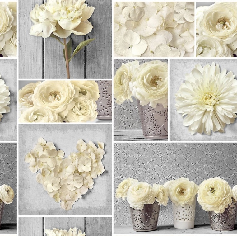 Клеёнка на нетканой основе "Мажор" "Коллаж: кремов. цветы" на св.сер. шир.1,35м 572/15 "Колорит" *20