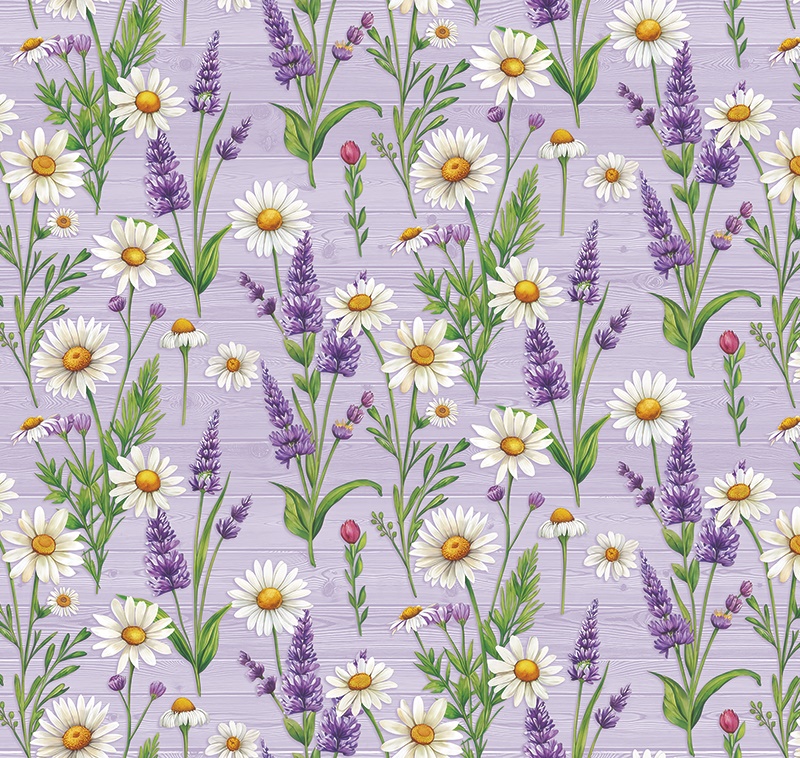 Клеёнка на тканевой основе "Этюд" "Ромашки, лаванда" на сиреневом шир.1,25м 660/7 "Колорит" *25