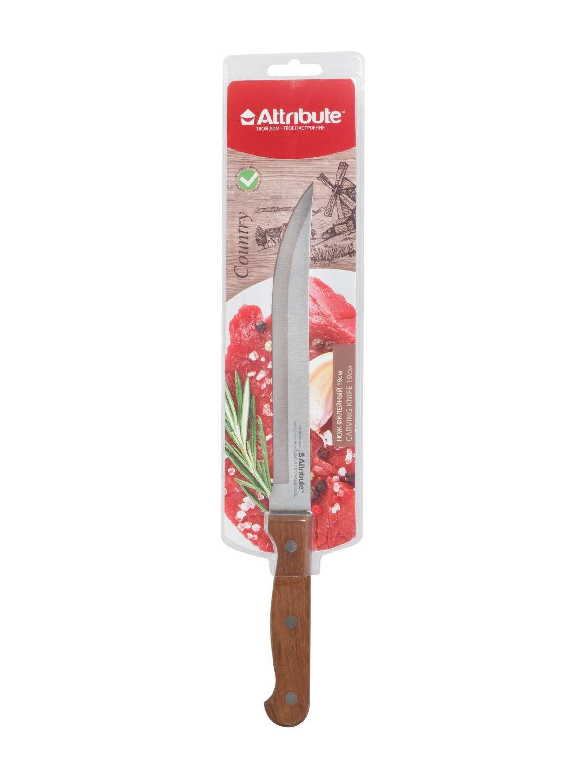 Нож кухонный ATTRIBUTE дер.руч. Country филейный дл.лезв.19см AKC238 блистер *1/6/36