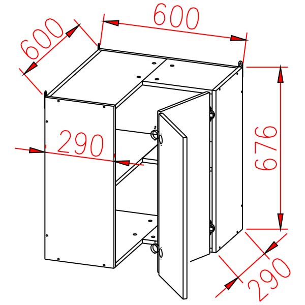 Шкаф навесной угловой 600х600 мм BROZEX-WOOD Camellia, с двумя дверцами, серый / юта