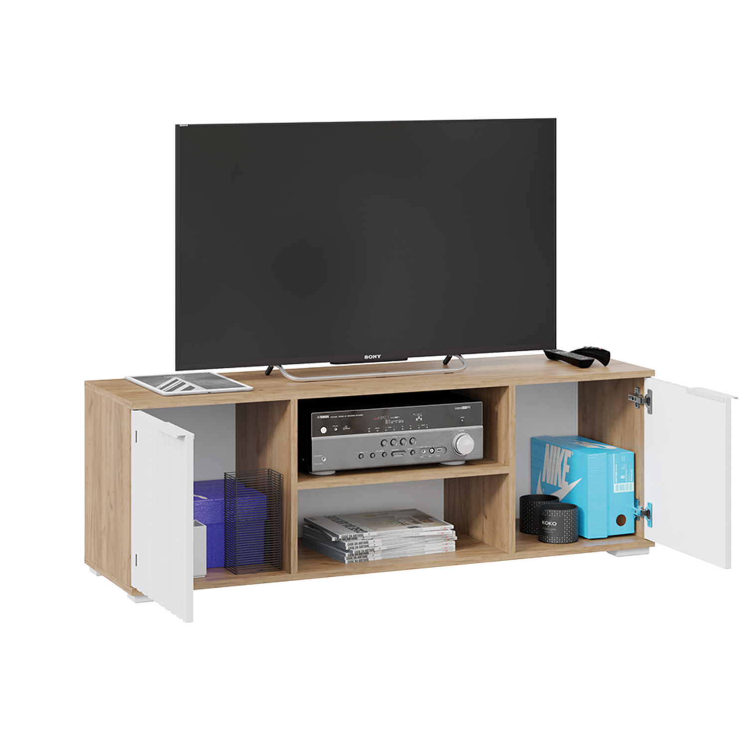 Тумба под ТВ Хилтон 1711х374хh452 (Дуб Крафт золотой, Белый матовый)*1