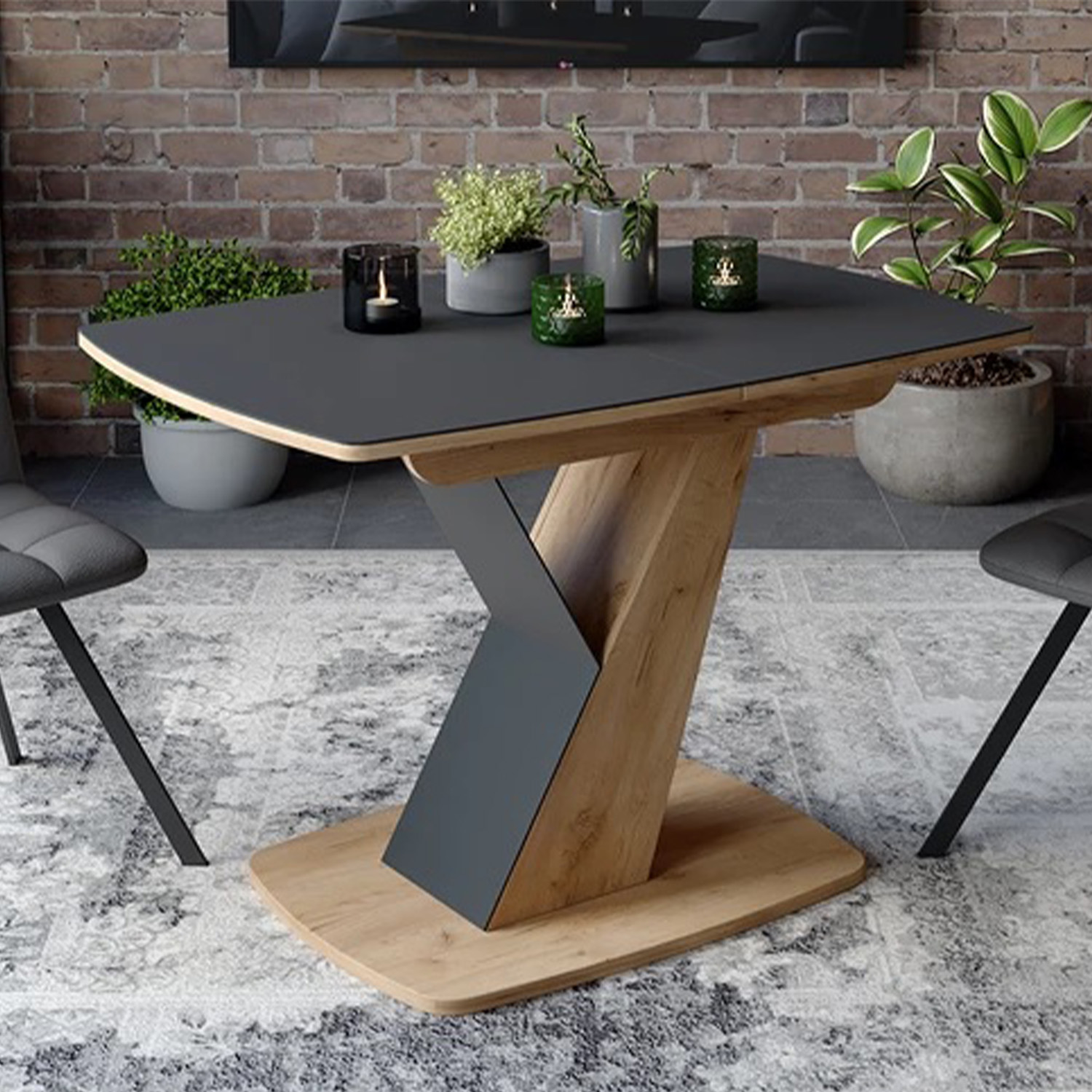 Стол обеденный прямоугольный раздв. Гарда Тип1 1100(+315)*790*760мм Дуб Крафт зол/стекло графит*1