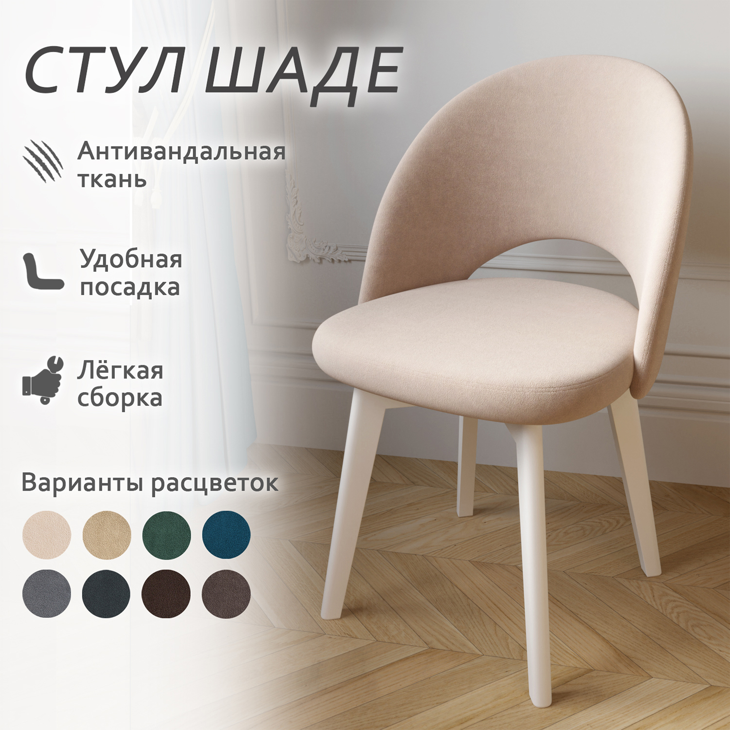 яяяКресло ШАДЕ ЛУМА 05 Бежевый+металл каркас СТЕЛС белый*4