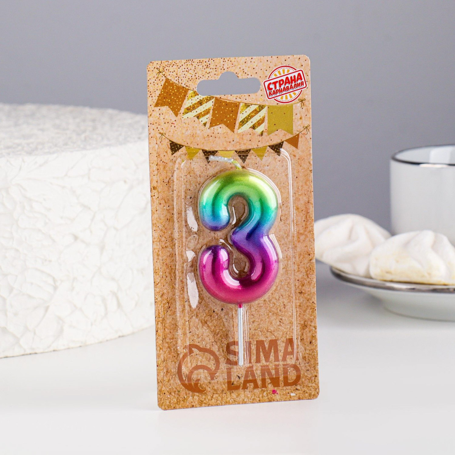 Свеча в торт "Акварель", цифра 3, 6 см 120315