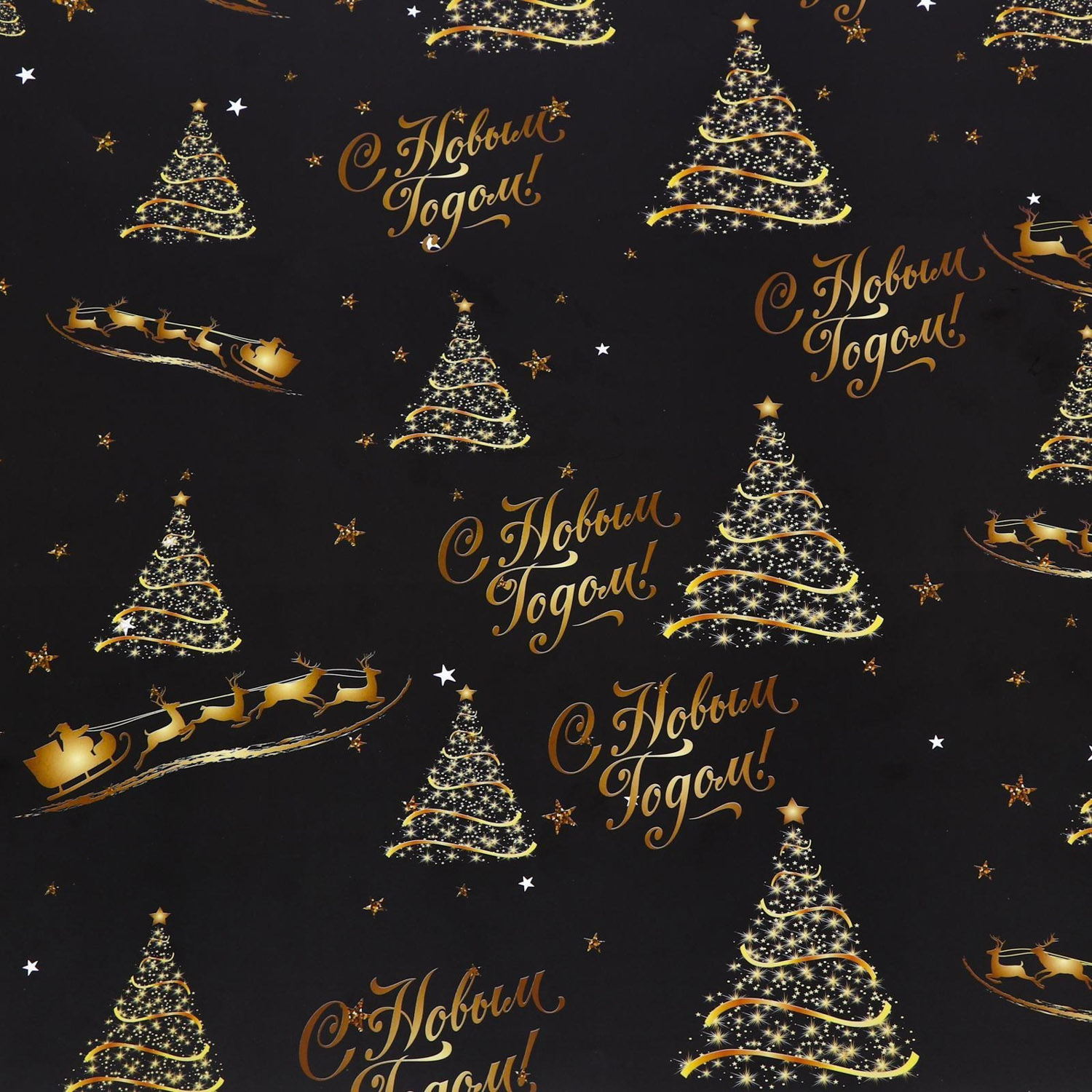 Бумага упаковочная глянцевая, двусторонняя "С Новым годом",золотой , 50 х 70 см 7096049