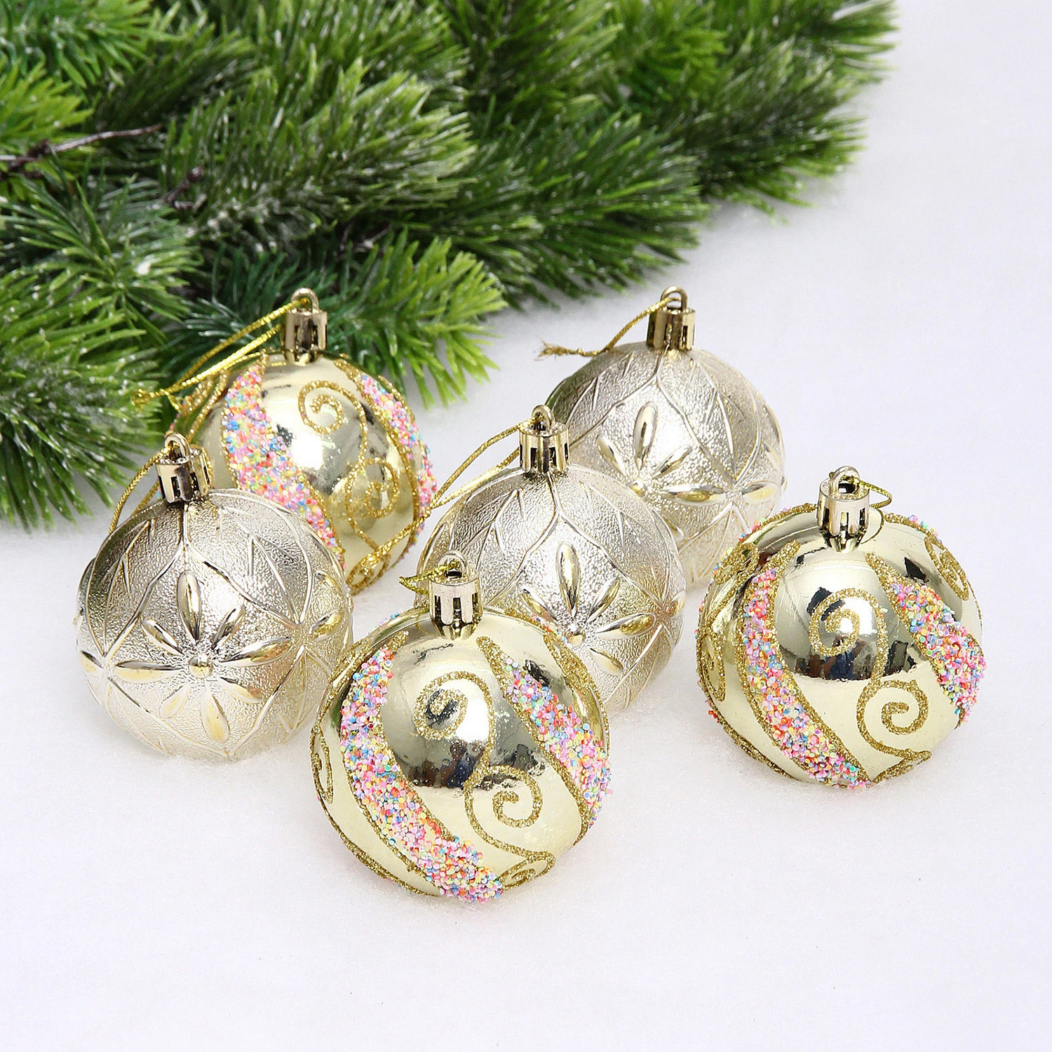 Набор шаров "Шарм" 6 см (в наборе 6 шт), Золото