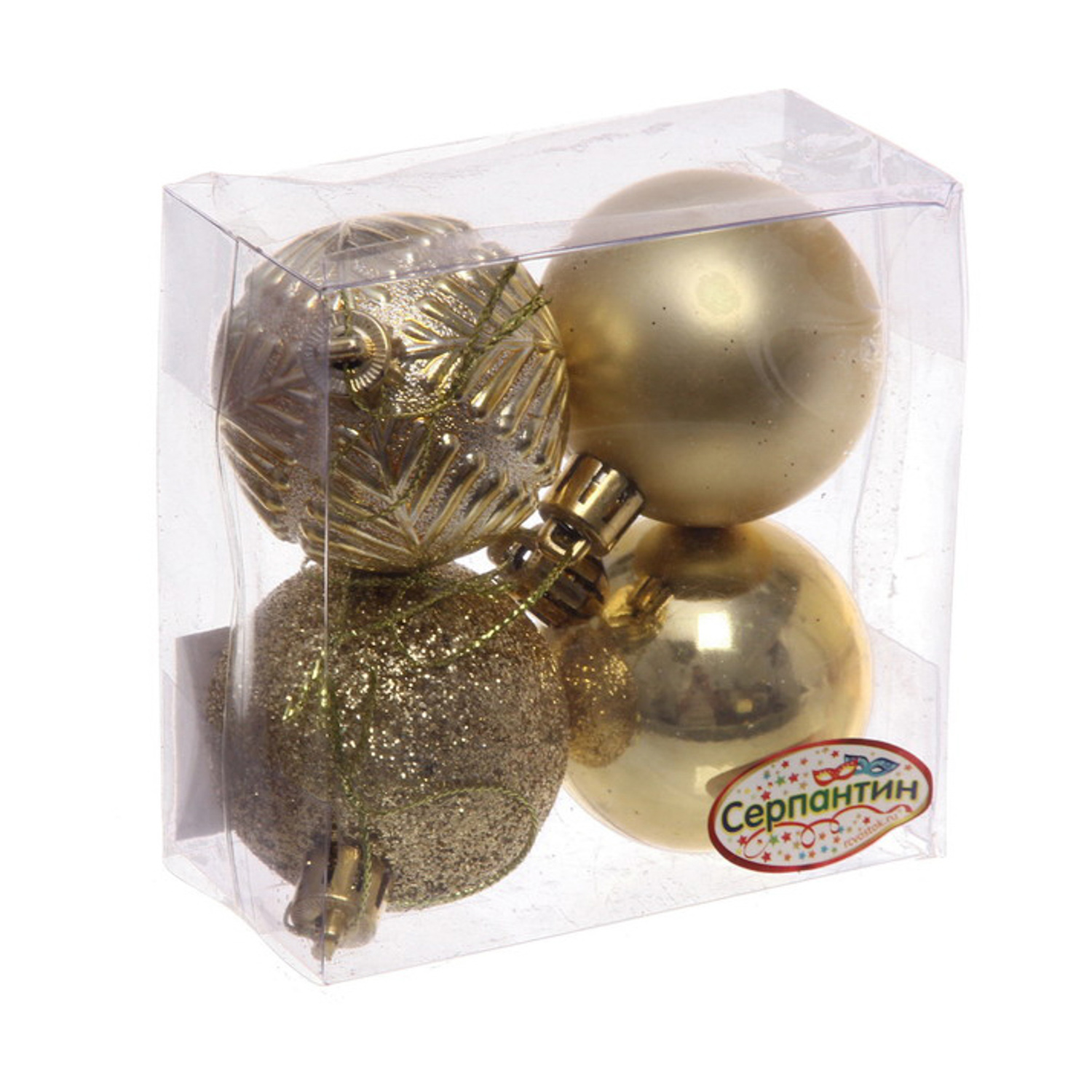 Новогодние шары 5 см (набор 4 шт) "Микс фактур", золотой
