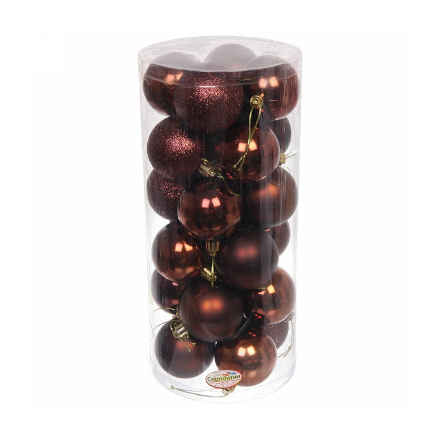 Набор новогодних шаров "Микс фактур", диаметр 6 см, 24 шт., шоколад