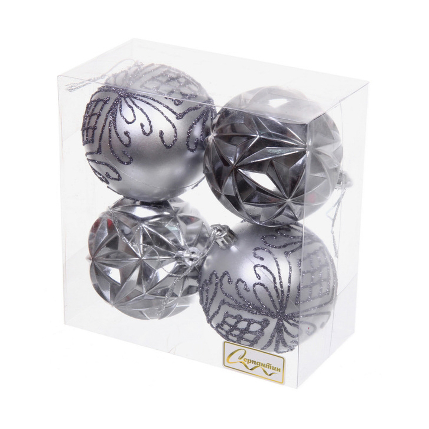 Новогодние шары 7 см (набор 4 шт) "Симфония леса", графит/серебро