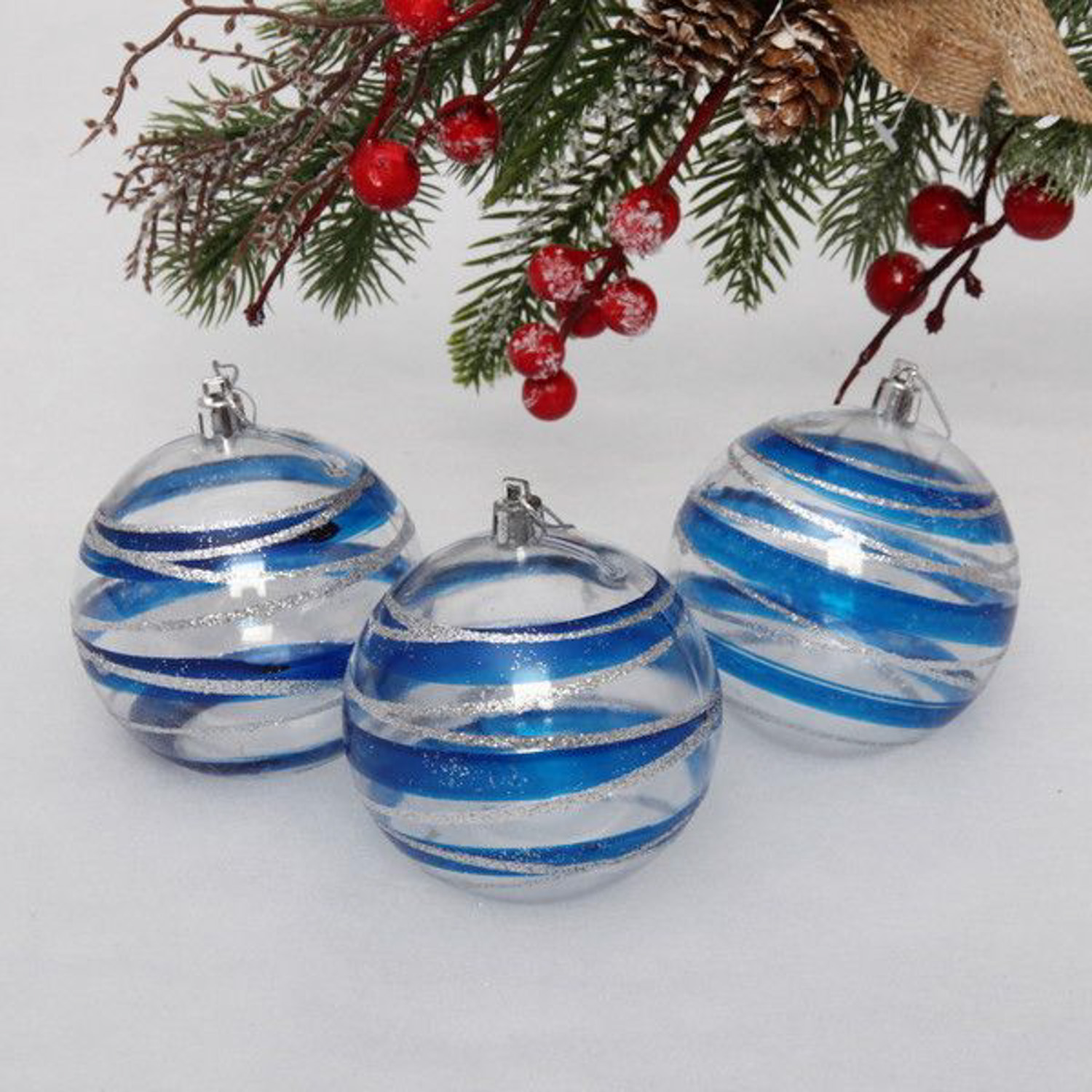 Набор новогодних шаров "Сказочный узор", диаметр 8 см, 3 шт., голубой/серебро