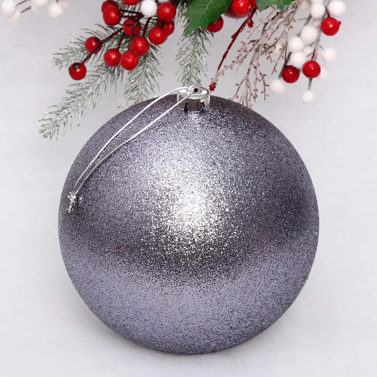 Новогодний шар 20 см "Глиттер", графит
