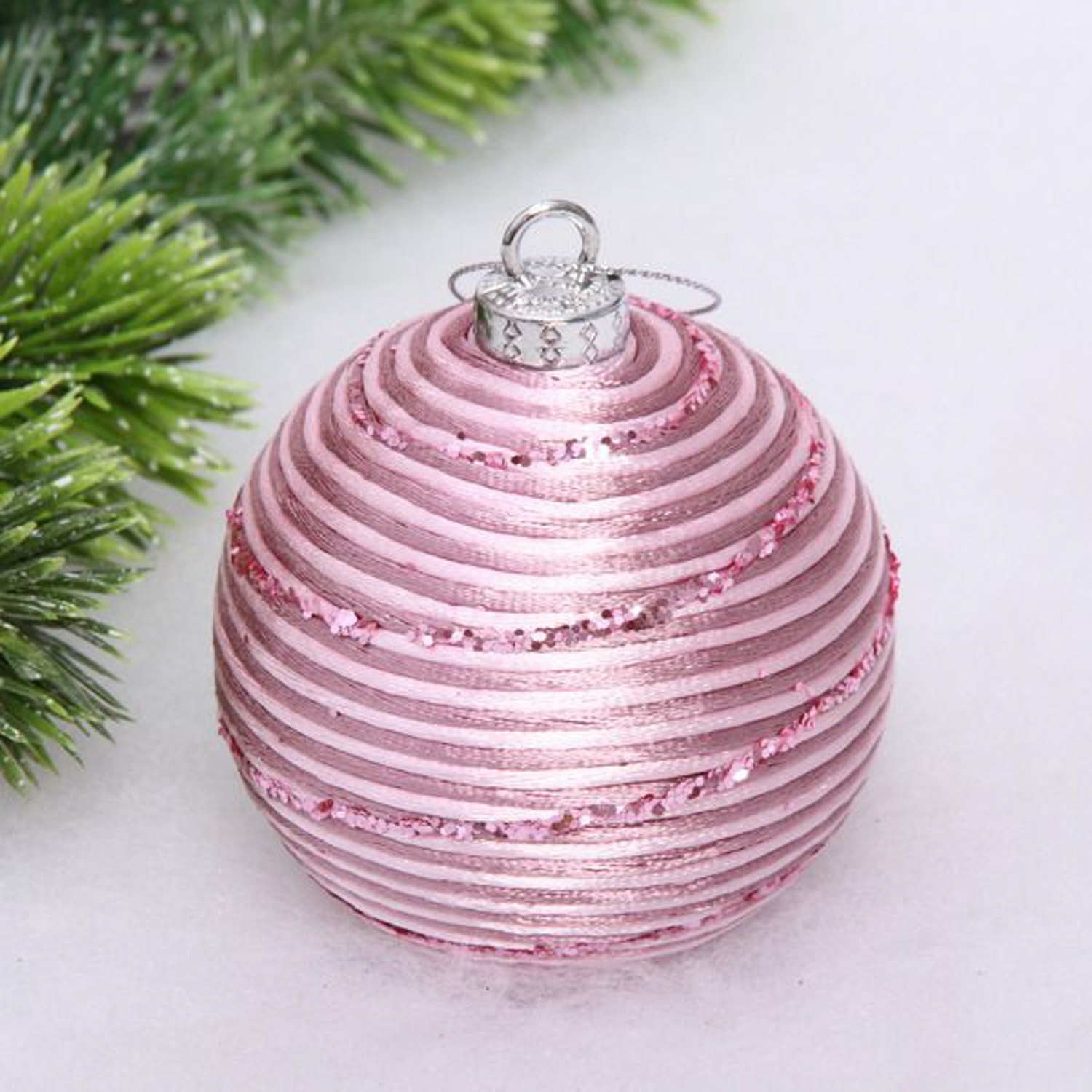 Новогодний шар "Переплетение нитей" 8 см, Розовое золото