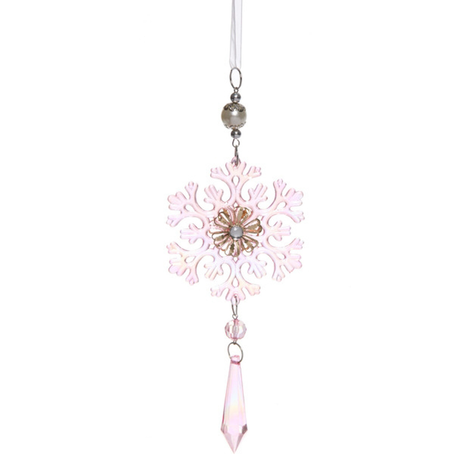 Подвеска "Ледяная снежинка" 8,5*20 см, Розовый
