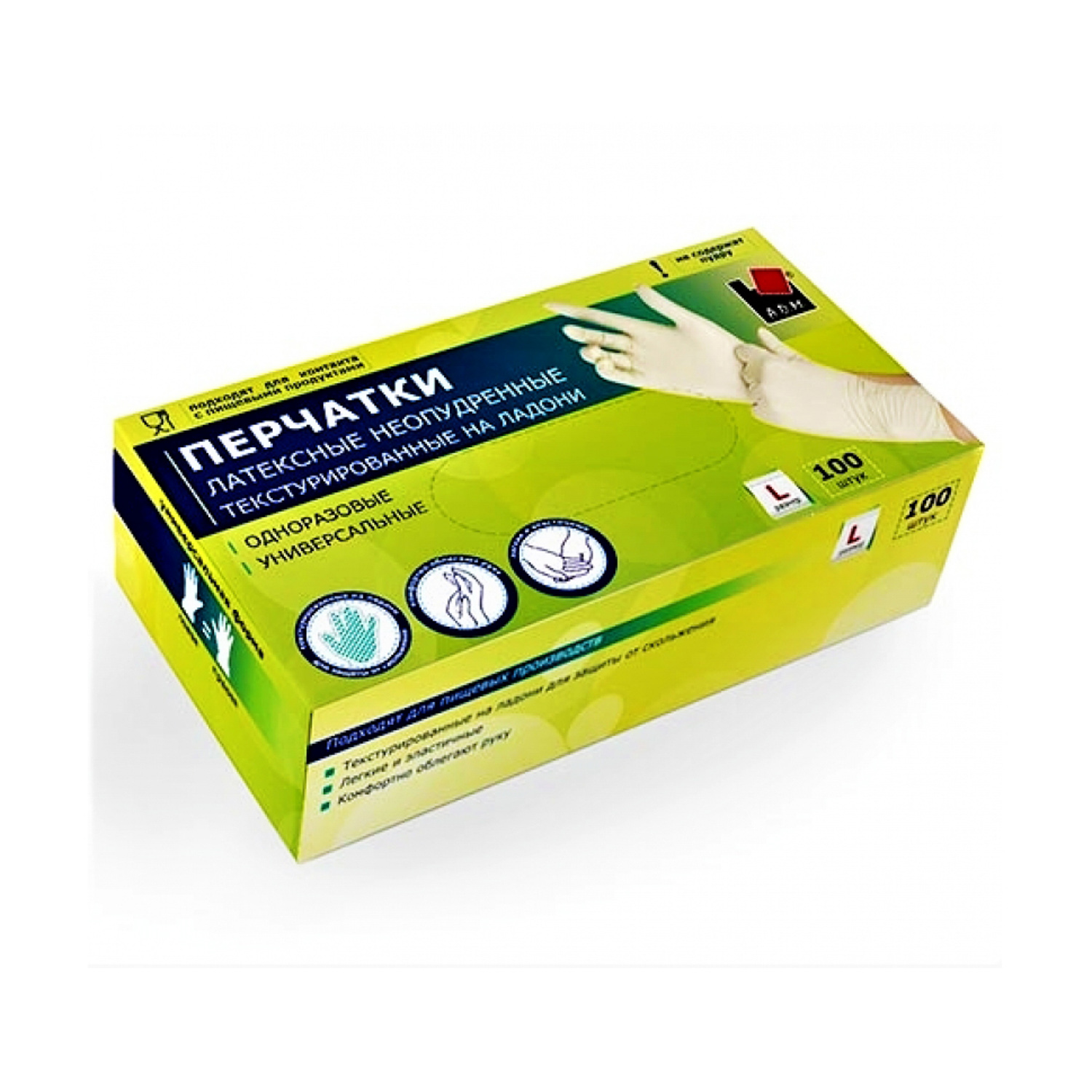 яяяПерчатки латексные одноразовые текстурир. на "пальцах" L (большой) 100шт в к.NPD050L А.Д.М. *1/10
