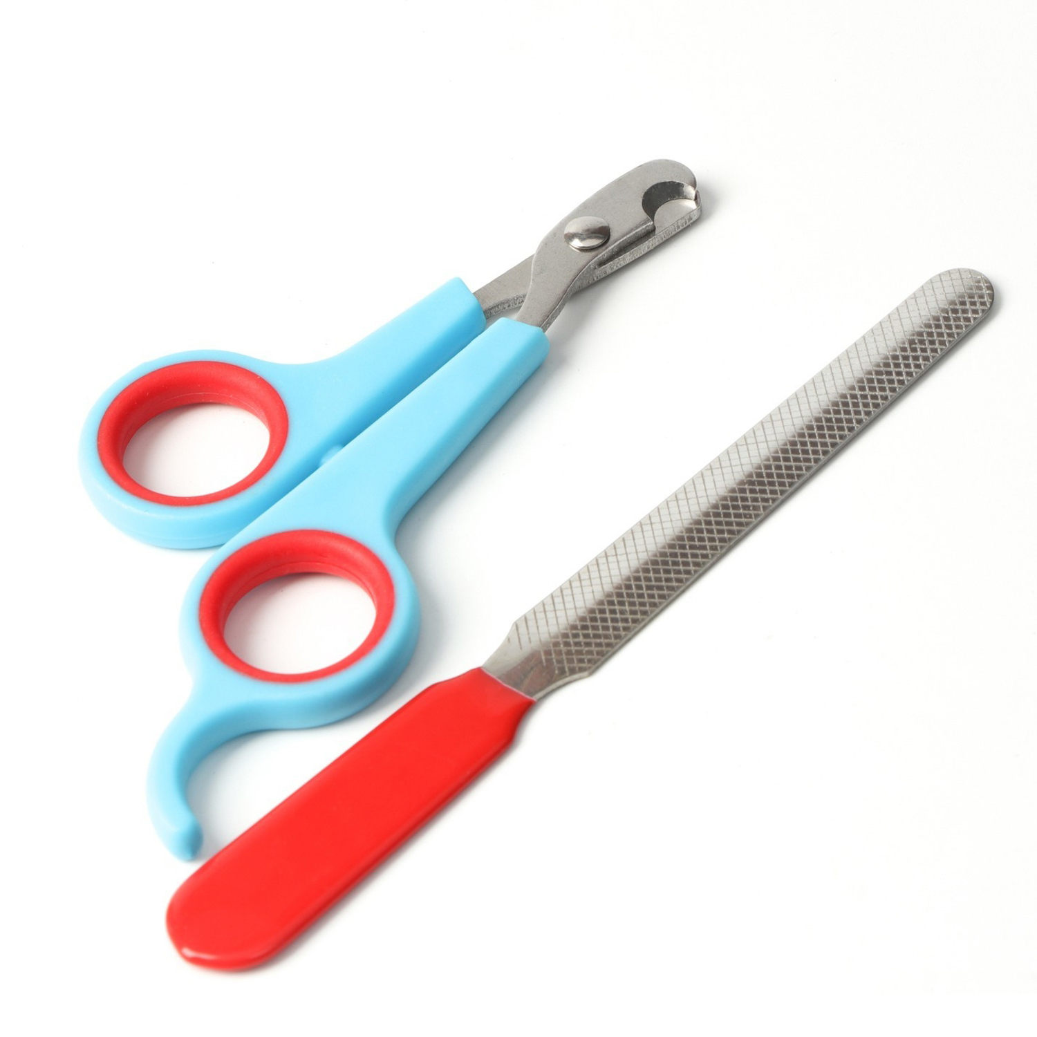 Набор по уходу за когтями: ножницы-когтерезы (отверстие 6 мм) и пилка, сине-красный  6960802