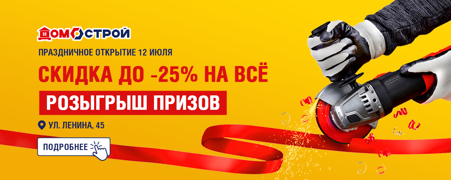 Акция действует только магазине ДомоСтрой г. Реж в период 01.07.2025-12.07.2025 (розыгрыш) и 12.07.2025 (скидка).